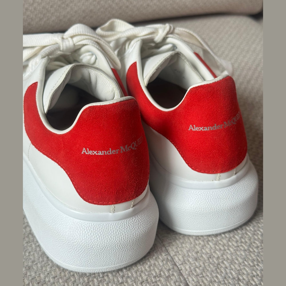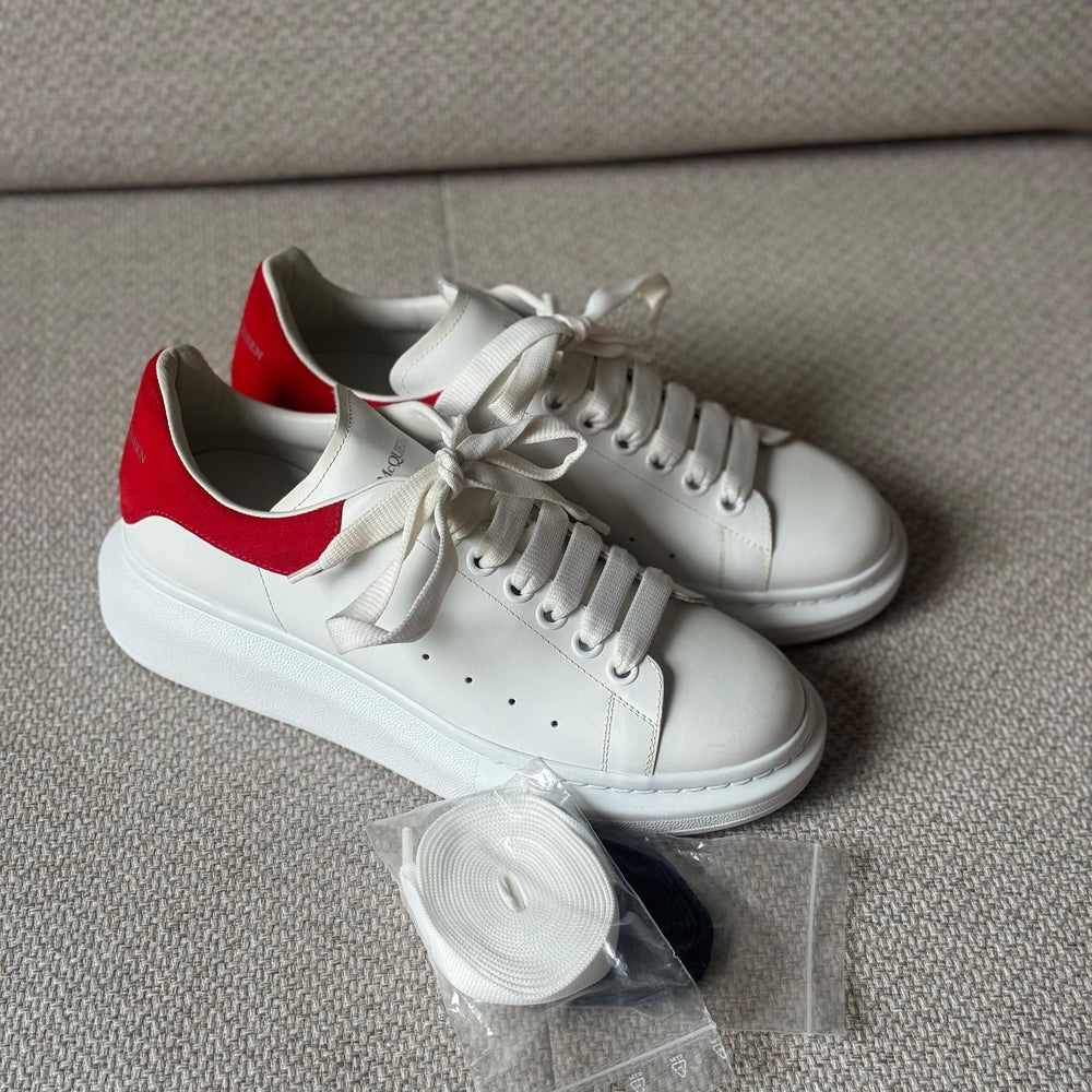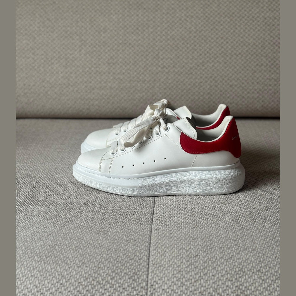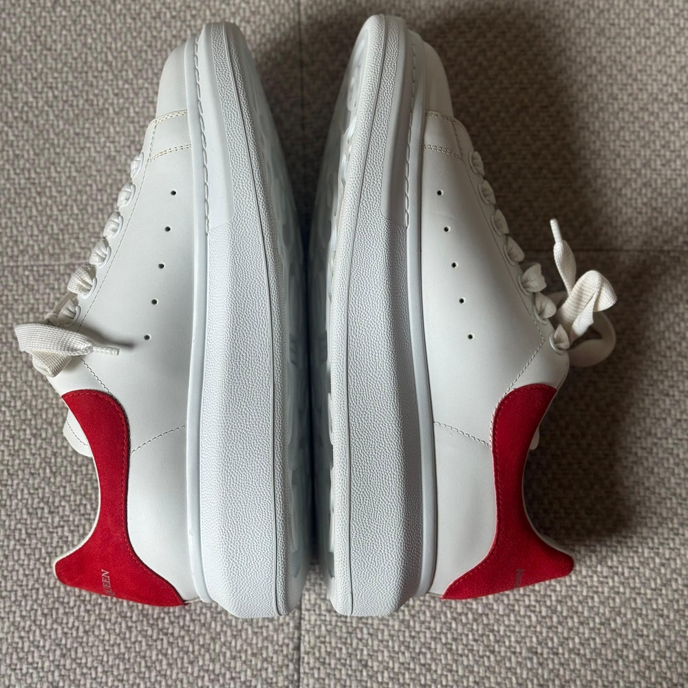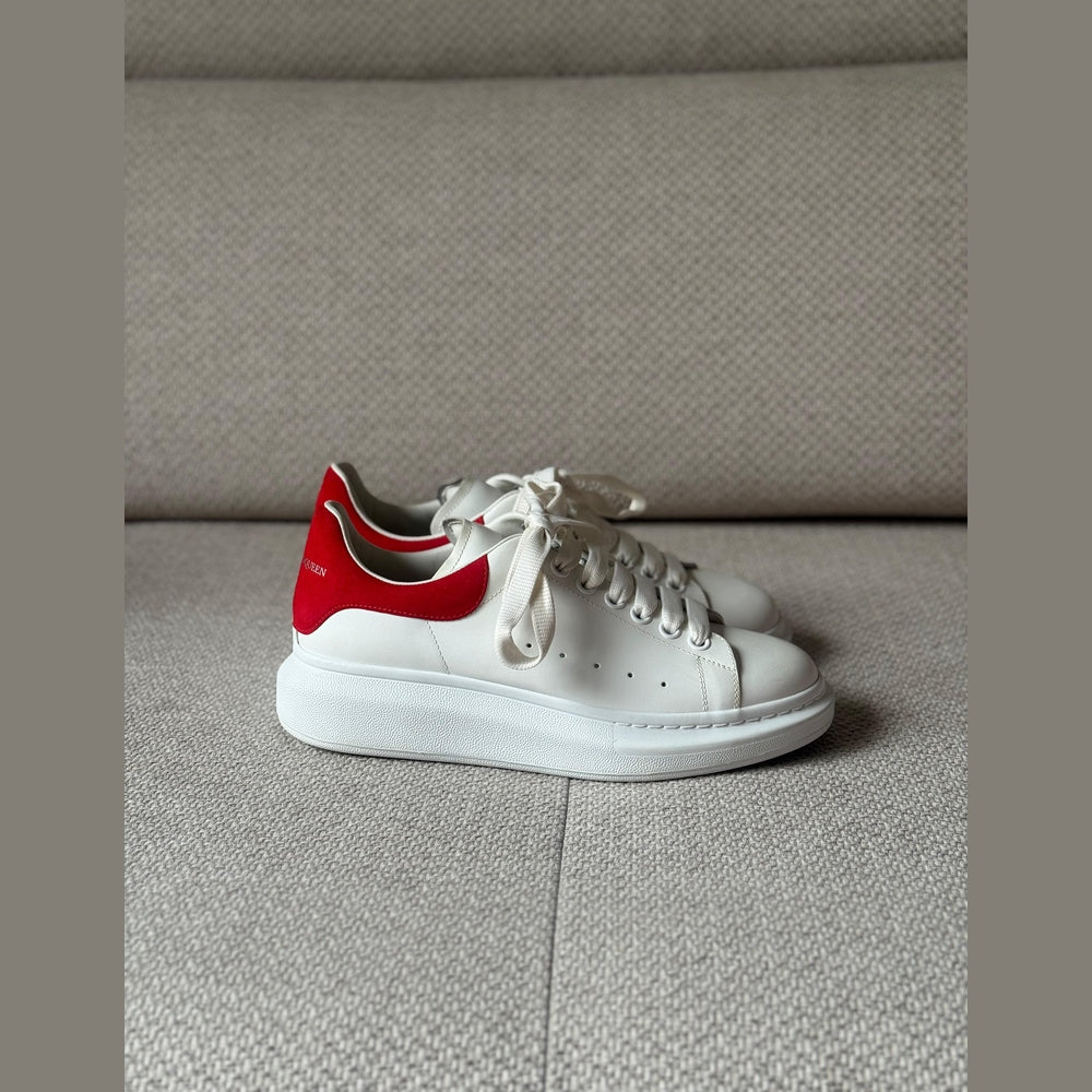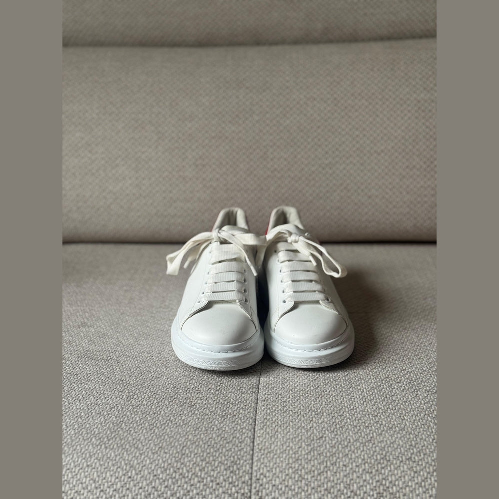 A modern icon of contemporary luxury, the Alexander McQueen Oversized Sneakers are defined by their clean lines, exaggerated sole, and minimalist aesthetic. Crafted from smooth white leather, this timeless silhouette delivers a bold yet refined statement, effortlessly elevating everyday looks.