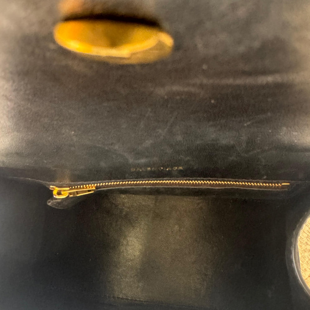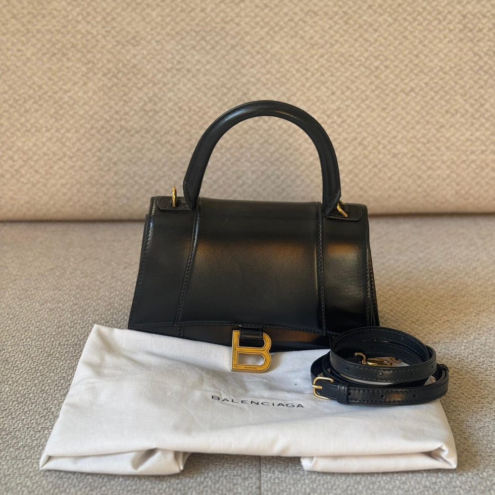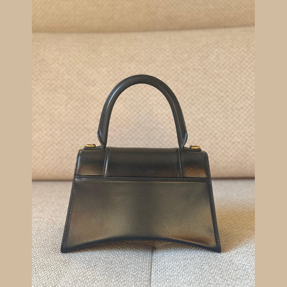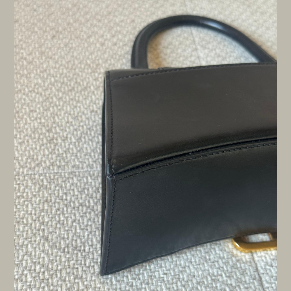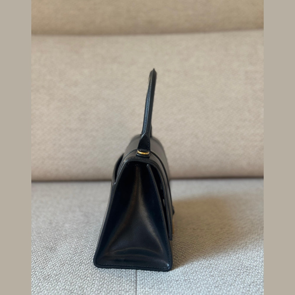 A true statement of modern structure and bold identity, the Balenciaga Hourglass bag is instantly recognizable for its sculptural curved silhouette and architectural lines. Crafted in smooth black leather and finished with the iconic gold “B” logo hardware, this piece embodies contemporary elegance with a distinctive edge. Designed to elevate both day and evening looks, it remains one of the house’s most coveted signatures.