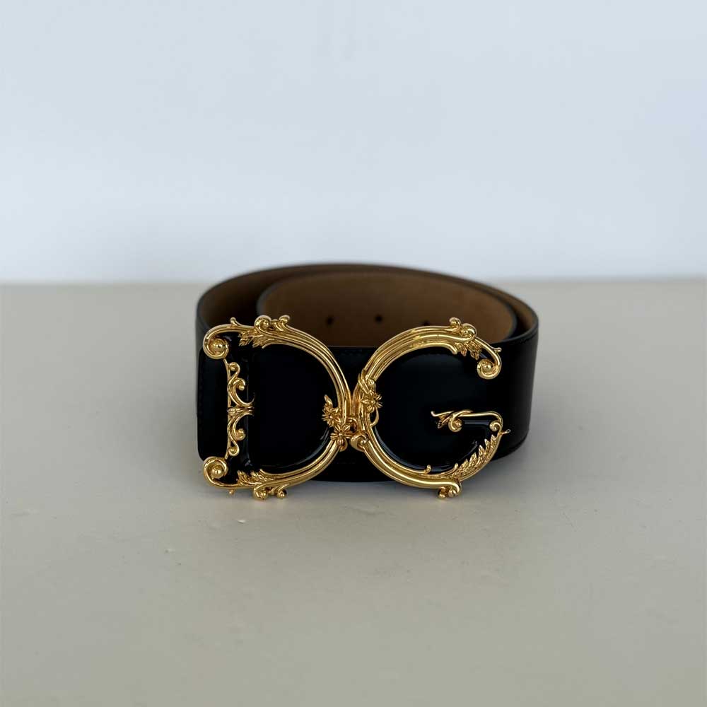 Black calfskin leather belt with DG logo 5cm height. Comes in Brand New condition with dust bag, box, cards & receipt included.