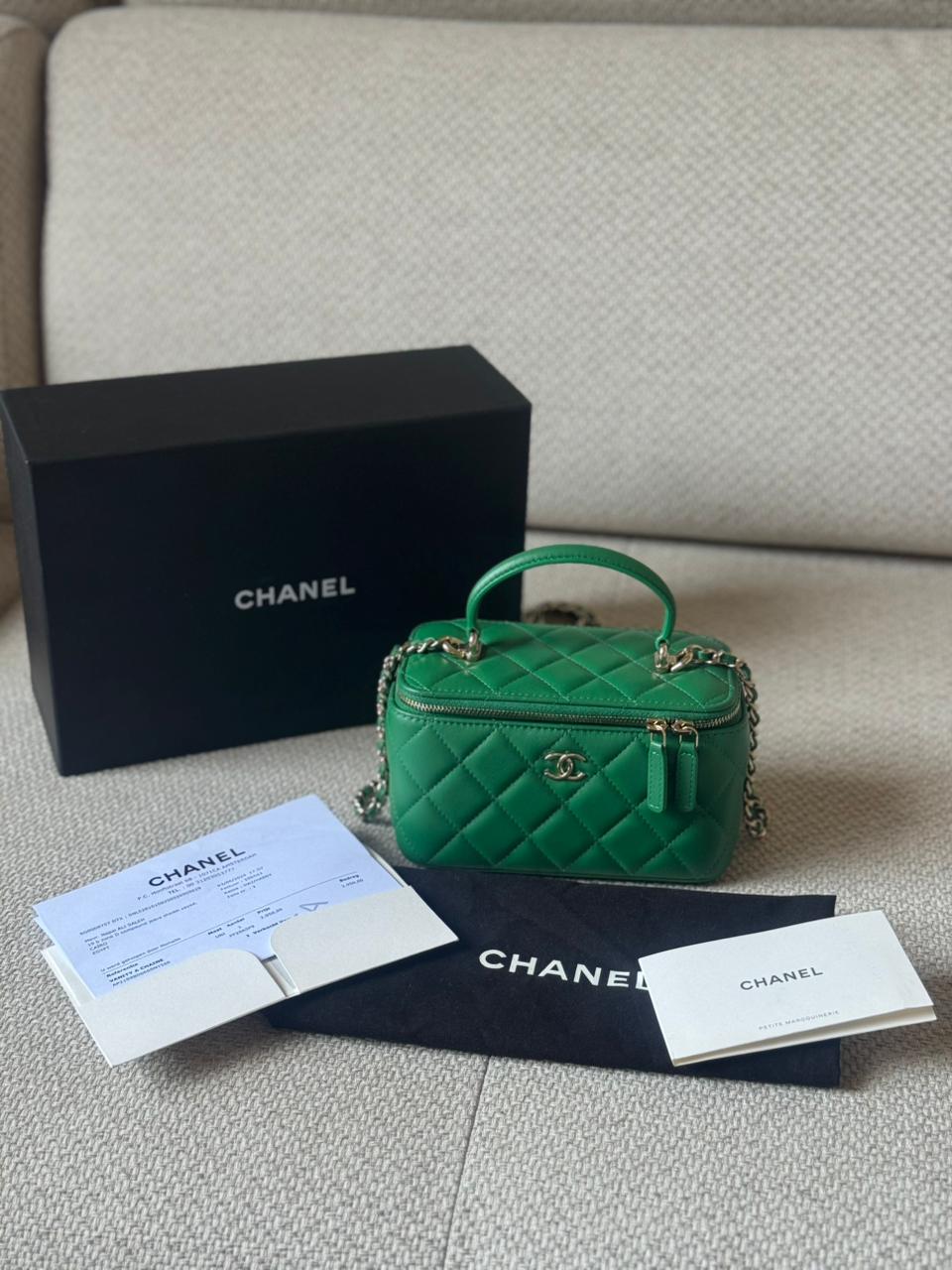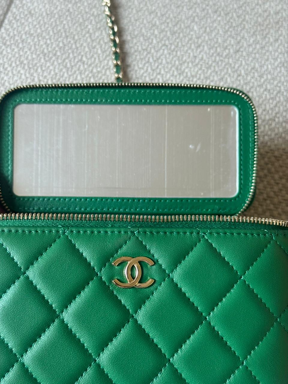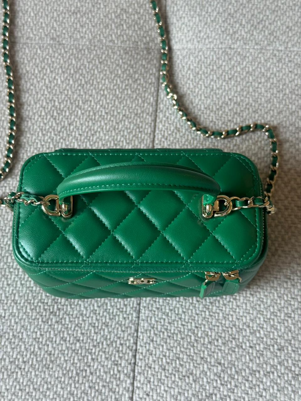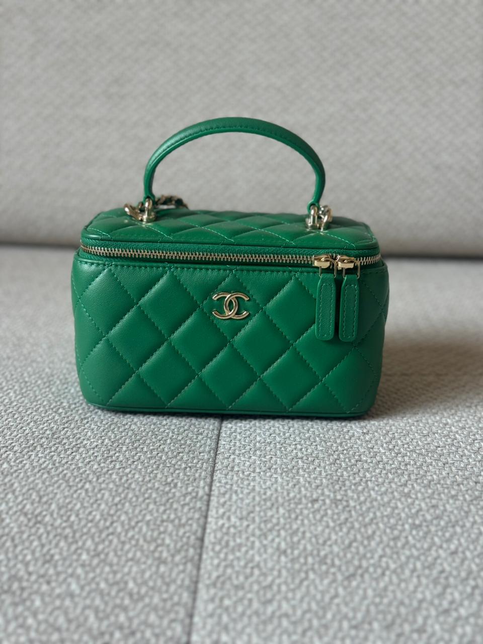 A refined and contemporary expression of Chanel’s iconic codes, this quilted Vanity Case combines structured elegance with practical design. Crafted in a rich green tone, the bag stands out subtly while remaining timeless — a sophisticated alternative to classic neutrals.