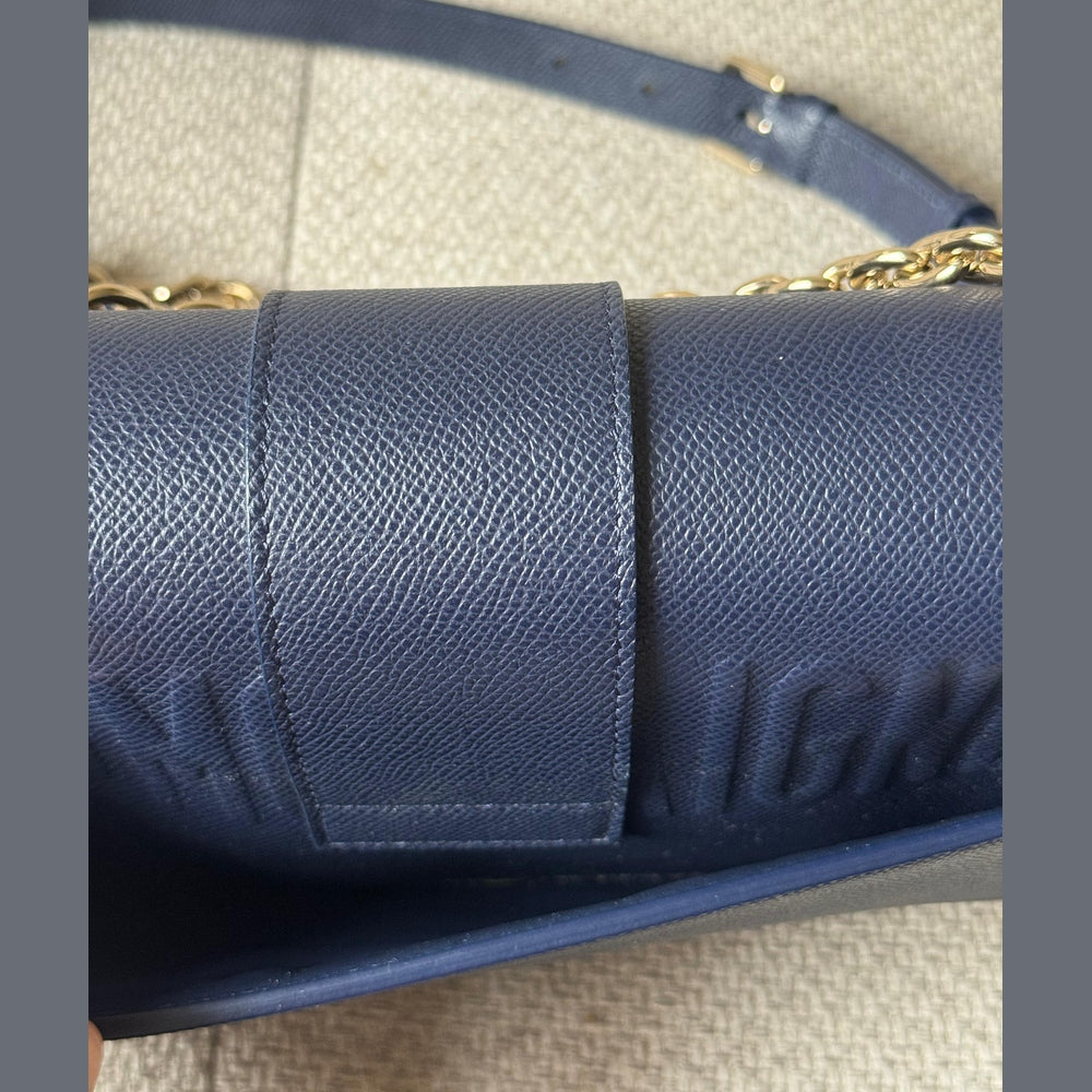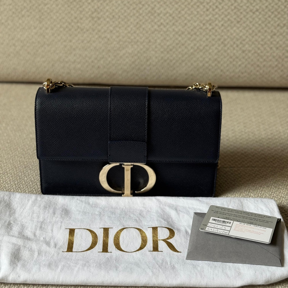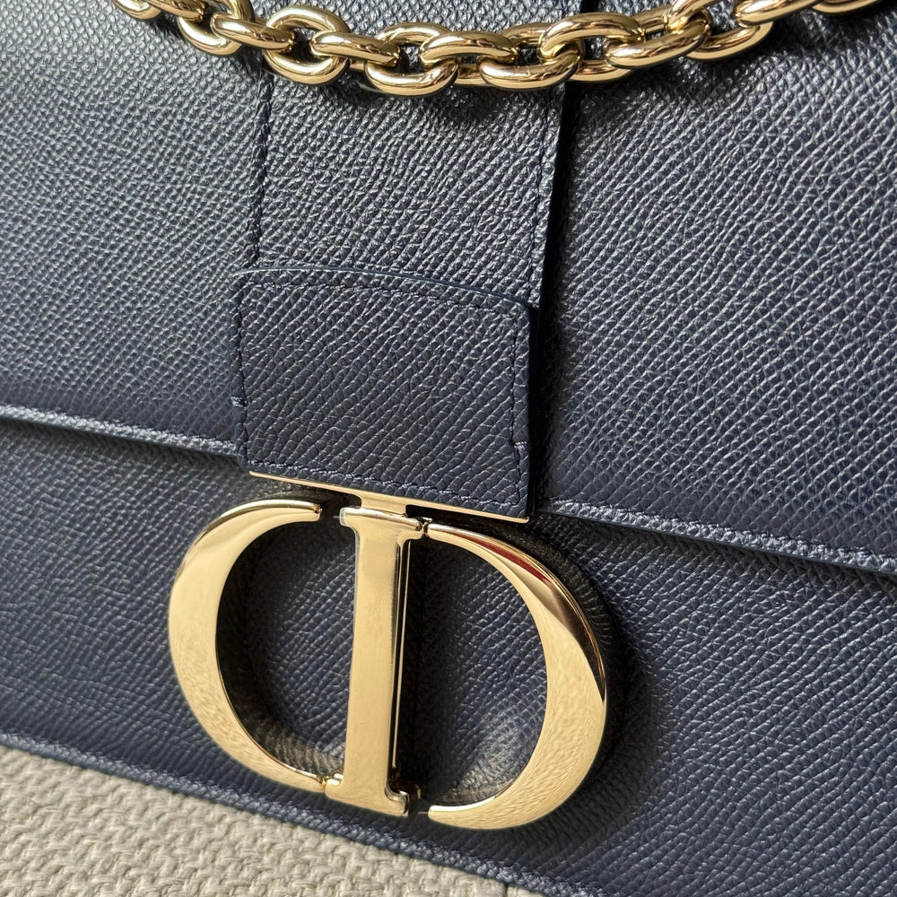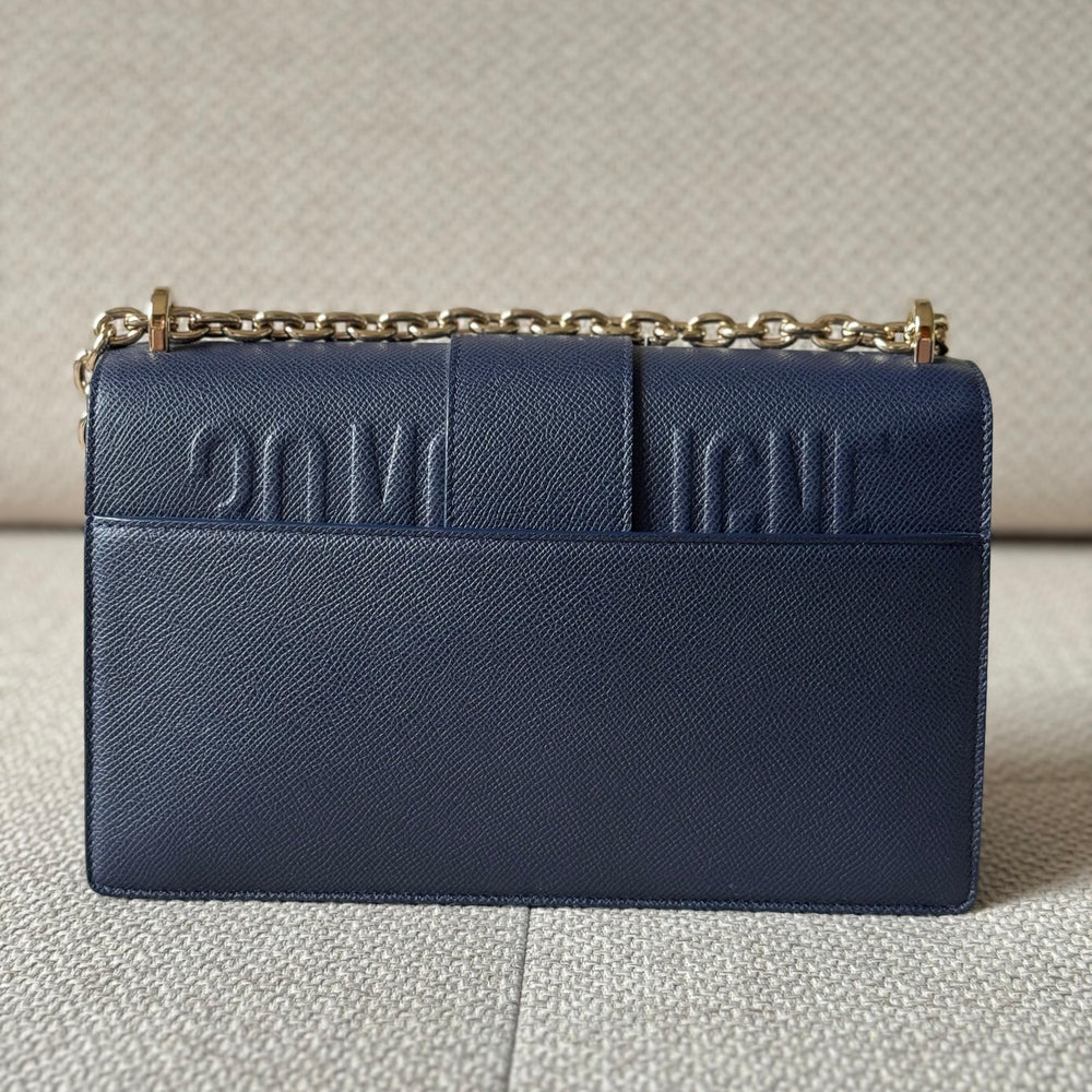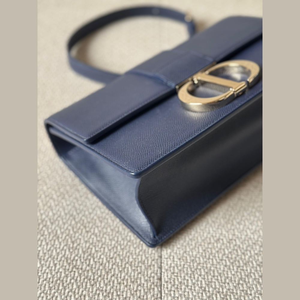 Crafted from luxurious navy blue grained calfskin, this Dior 30 Montaigne bag reflects the timeless elegance of the House of Dior. Inspired by the brand’s historic Parisian address, the bag features the signature gold-tone “CD” clasp on the front flap and an adjustable leather shoulder strap for versatile wear. The structured silhouette and refined detailing make it an effortless choice for both day and evening occasions.