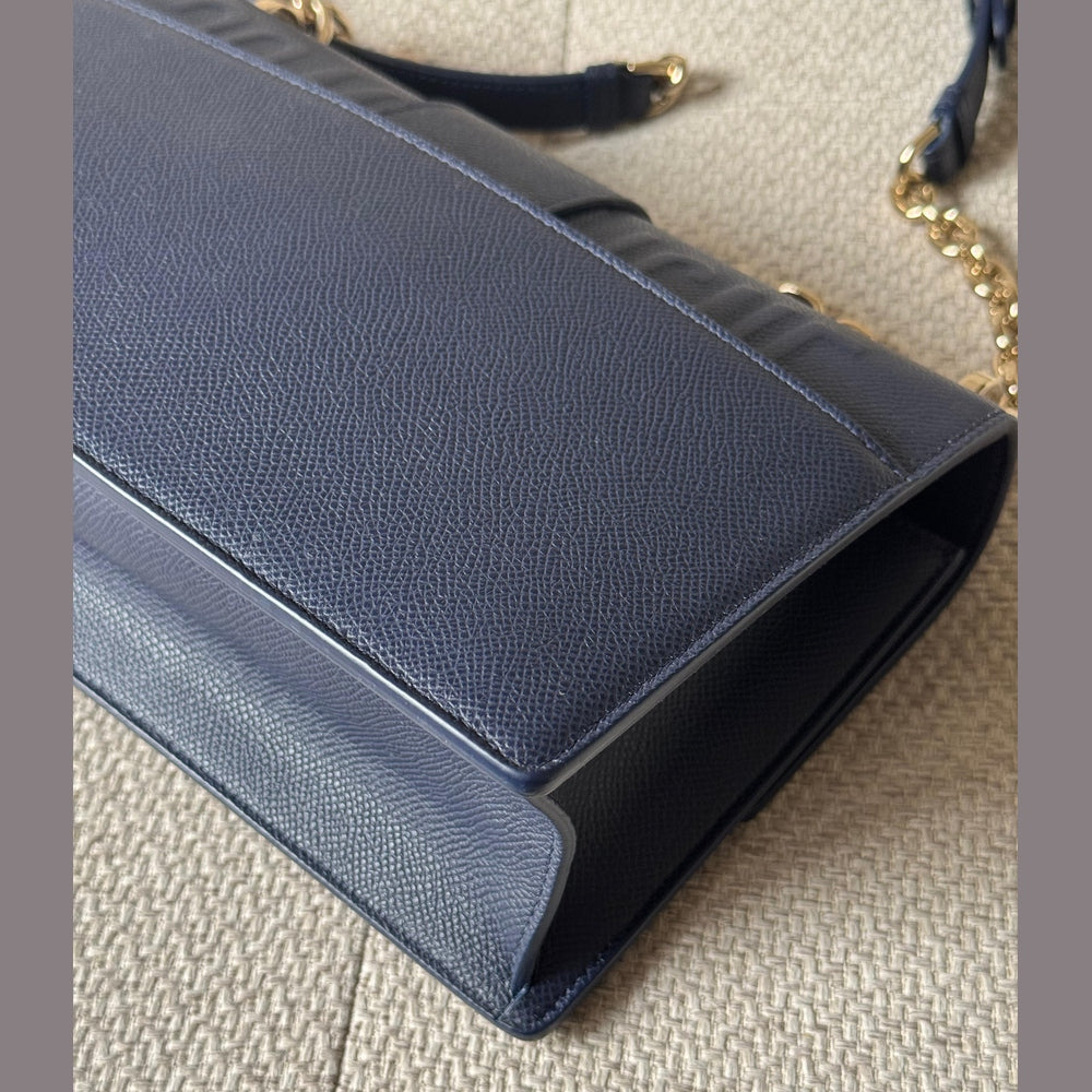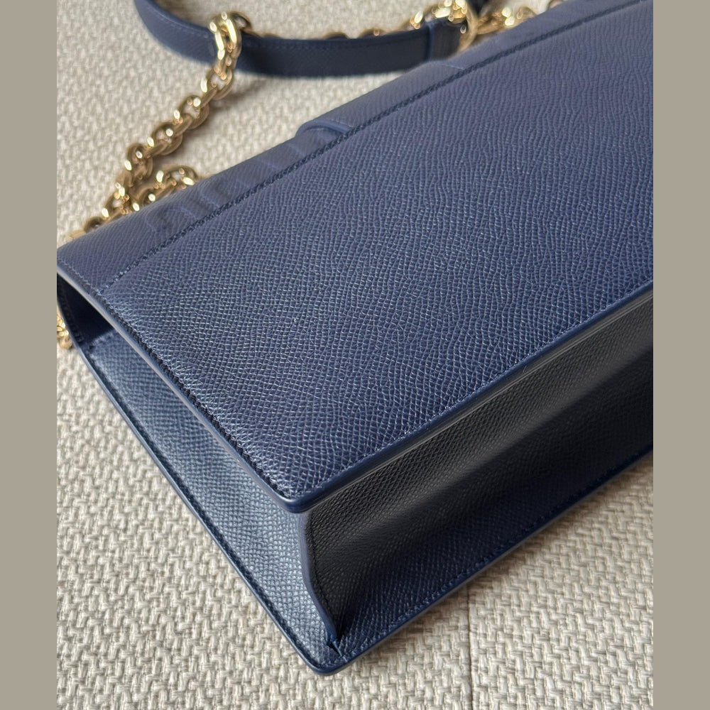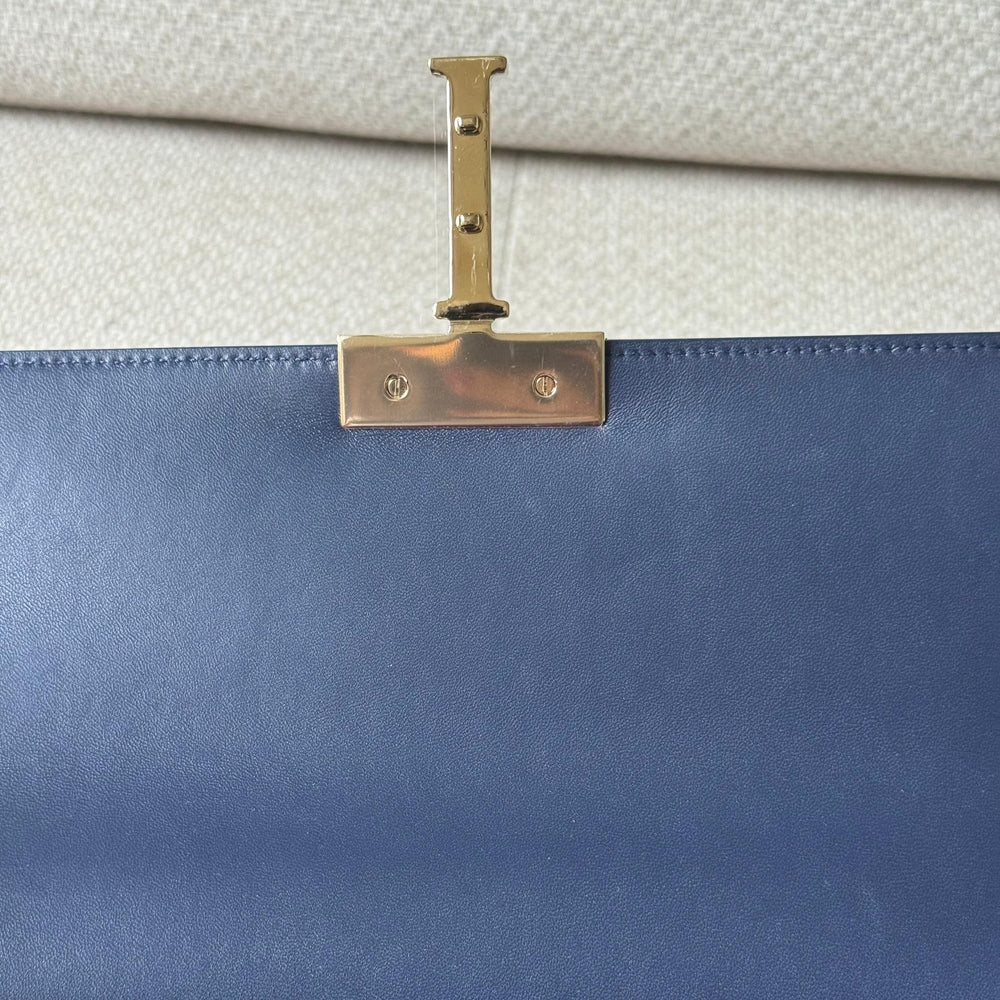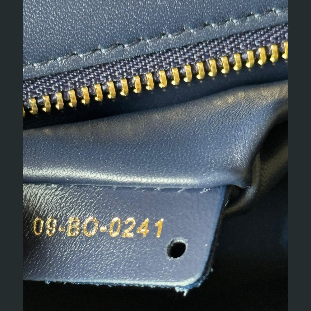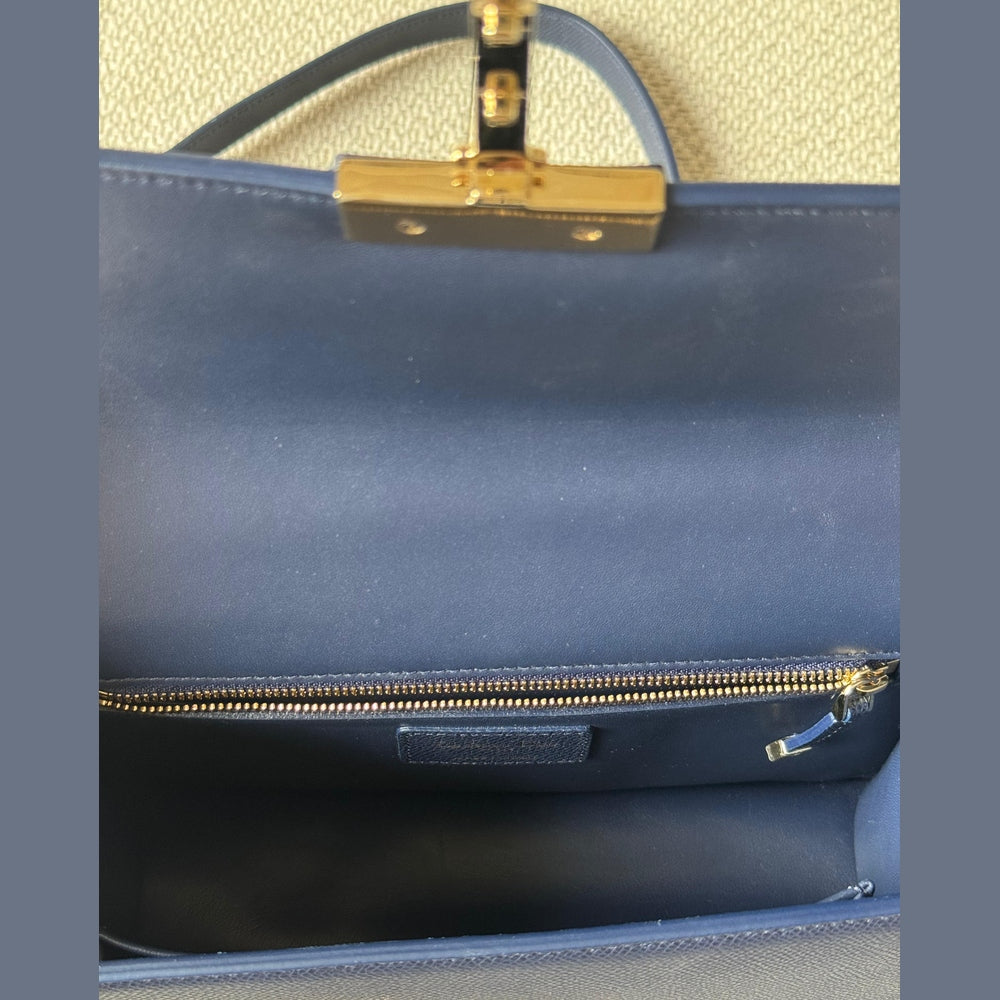 Crafted from luxurious navy blue grained calfskin, this Dior 30 Montaigne bag reflects the timeless elegance of the House of Dior. Inspired by the brand’s historic Parisian address, the bag features the signature gold-tone “CD” clasp on the front flap and an adjustable leather shoulder strap for versatile wear. The structured silhouette and refined detailing make it an effortless choice for both day and evening occasions.
