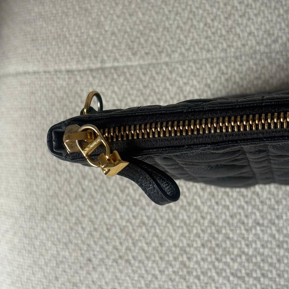 Sleek and understated, the Christian Dior Daily Caro Pouch is a refined expression of the House’s modern elegance. Crafted in classic black, this versatile piece features a clean silhouette that transitions effortlessly from day to evening, making it an ideal companion for both casual and formal settings.