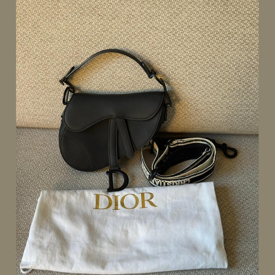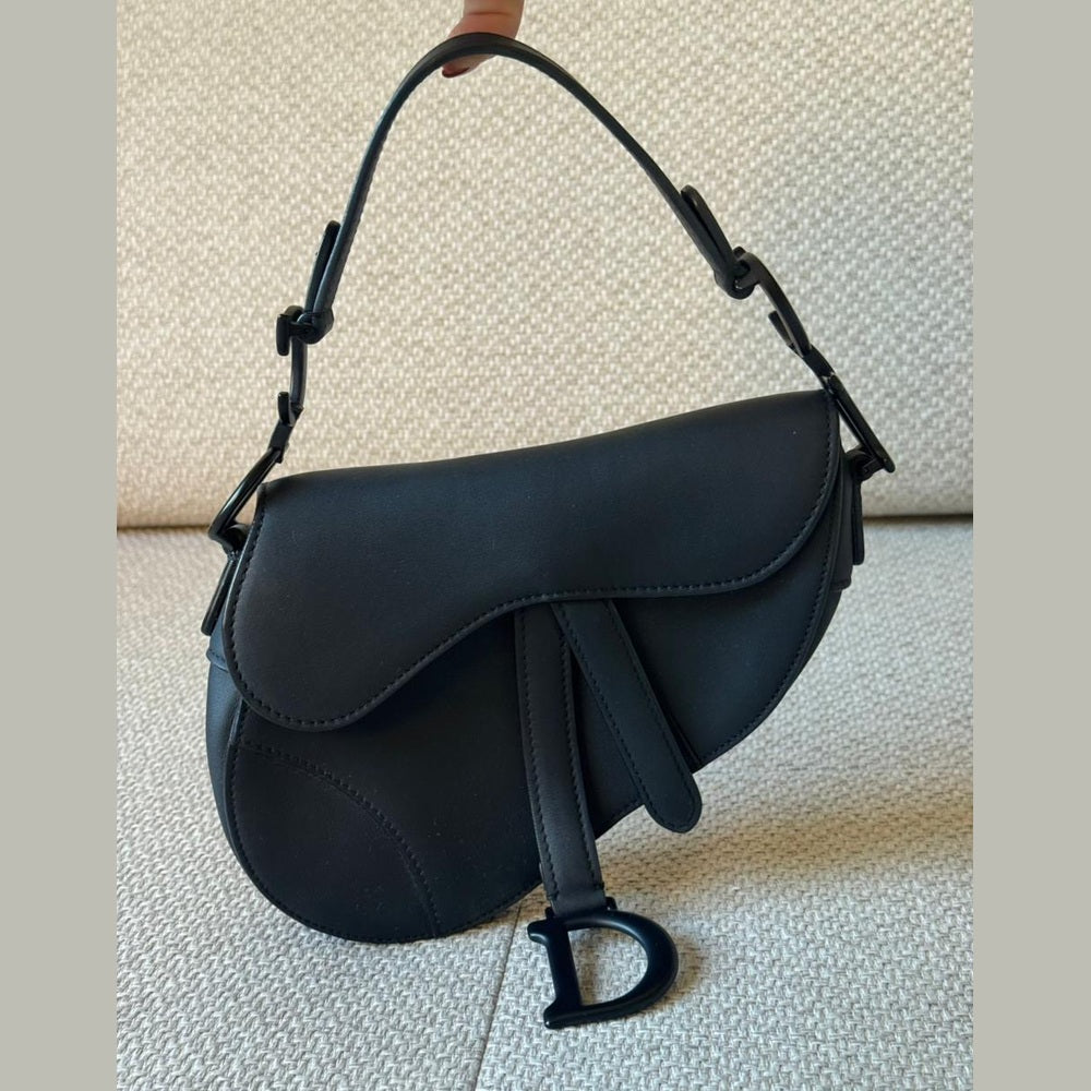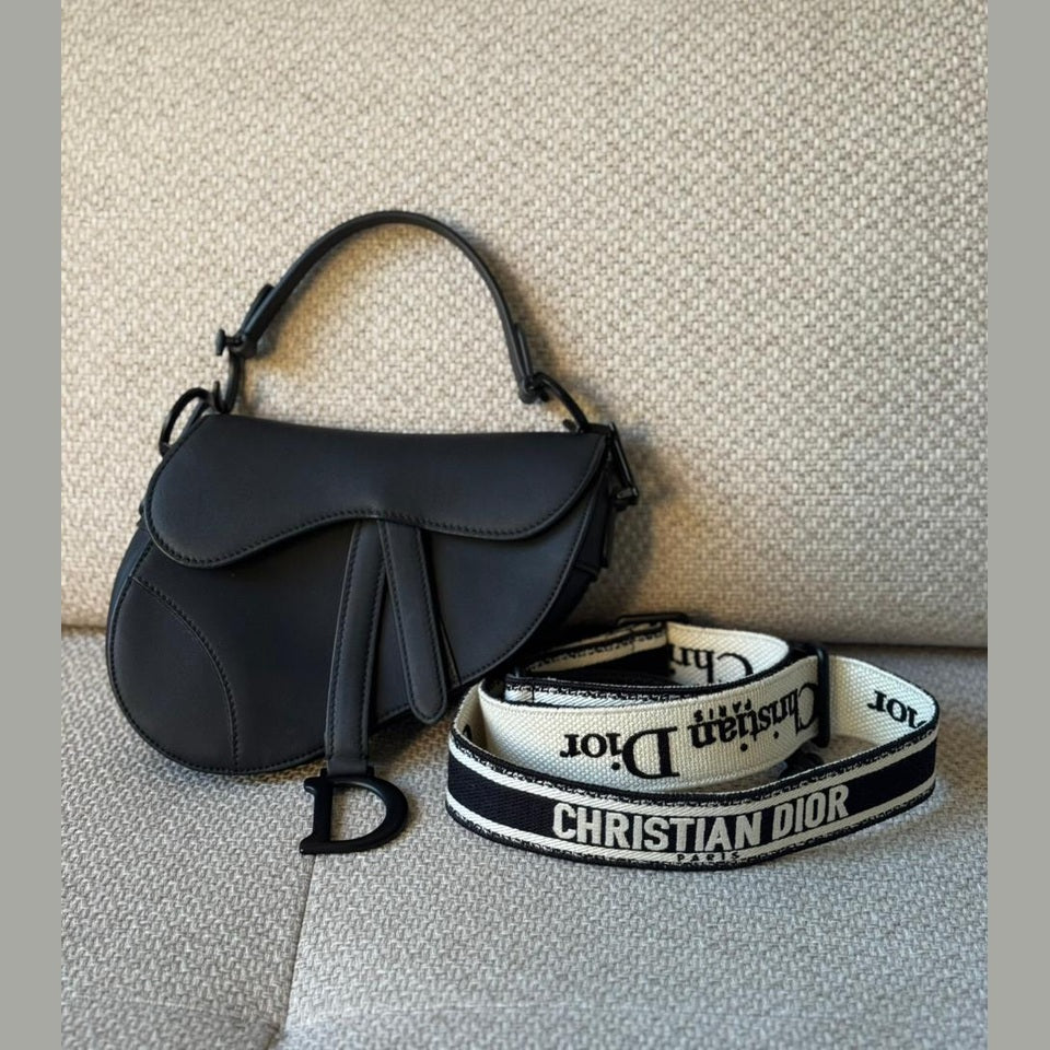 A cult icon reimagined in a modern matte finish, the Mini Saddle Bag is one of Dior’s most recognizable silhouettes. This piece comes in luxurious black matte calfskin with tonal hardware, offering a sleek, understated, and ultra-chic look. Paired with its Christian Dior adjustable canvas shoulder strap, it transitions effortlessly from day to night.