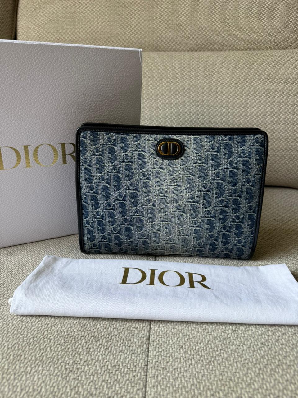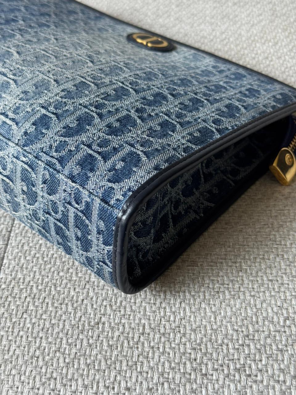 A sleek and versatile accessory from Dior, the 30 Montaigne pouch is crafted in the iconic Oblique denim canvas, reflecting the House’s timeless heritage. Its minimalist silhouette is elevated by the signature CD detail, making it an elegant piece for both day and evening use. Perfect as a clutch or an organizer within a larger bag, it combines practicality with unmistakable Dior style.