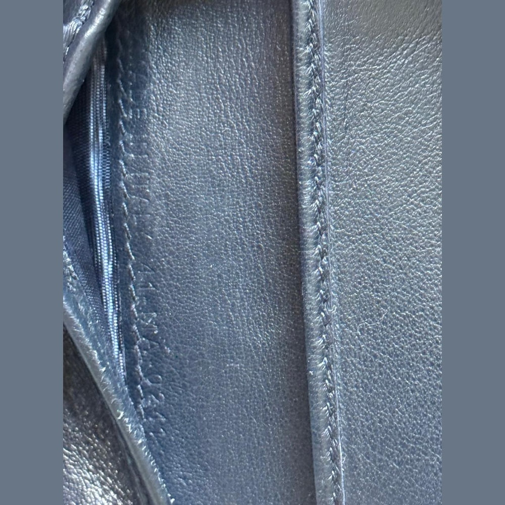 The interior opens to reveal multiple compartments for cards and bills, making it both practical and luxurious. Slim yet structured, the wallet easily fits in your handbag or can be carried on its own for a chic, minimalist statement.