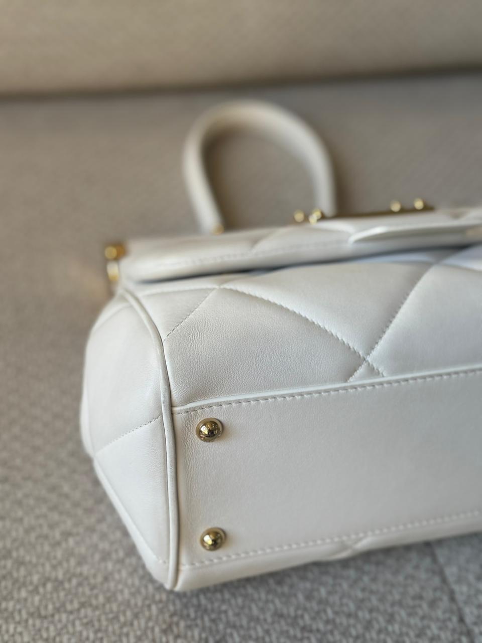 Designed with a top handle and an additional strap, it can be carried by hand for a classic look or worn crossbody for versatile styling. The crisp white shade enhances its statement appeal while remaining timeless and sophisticated.