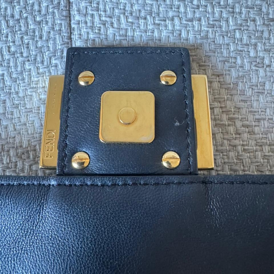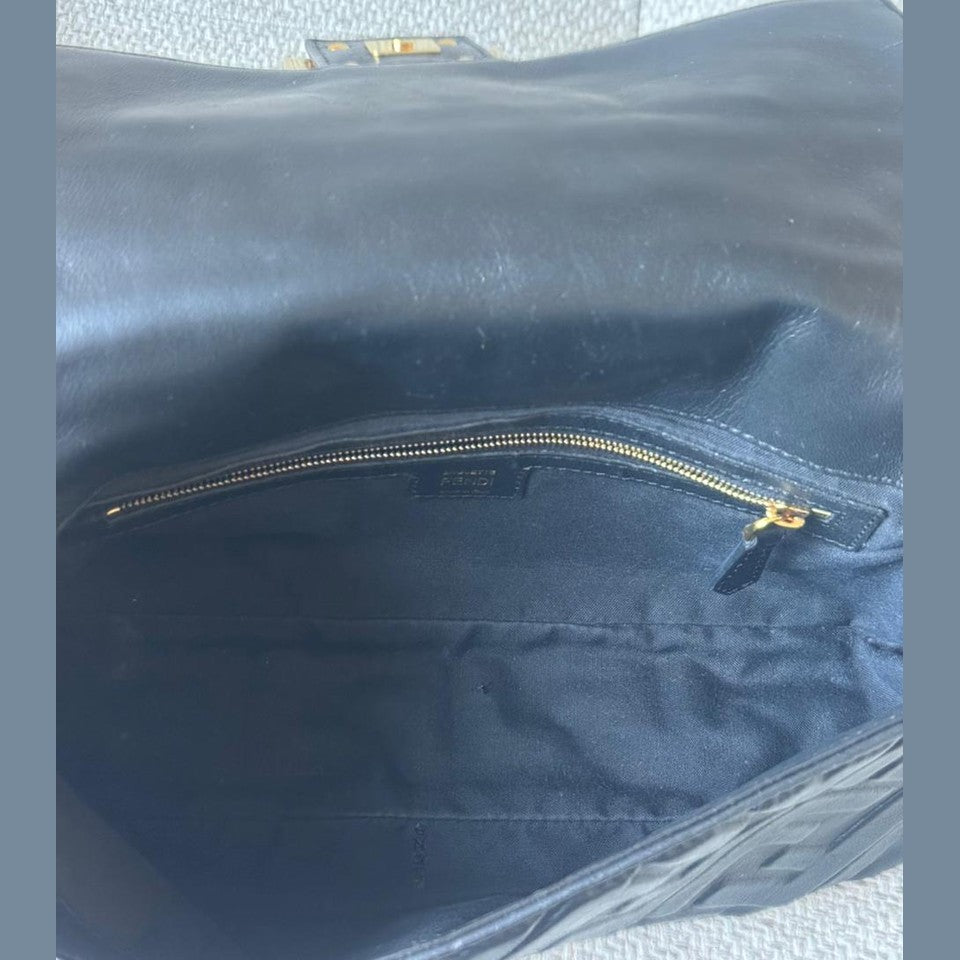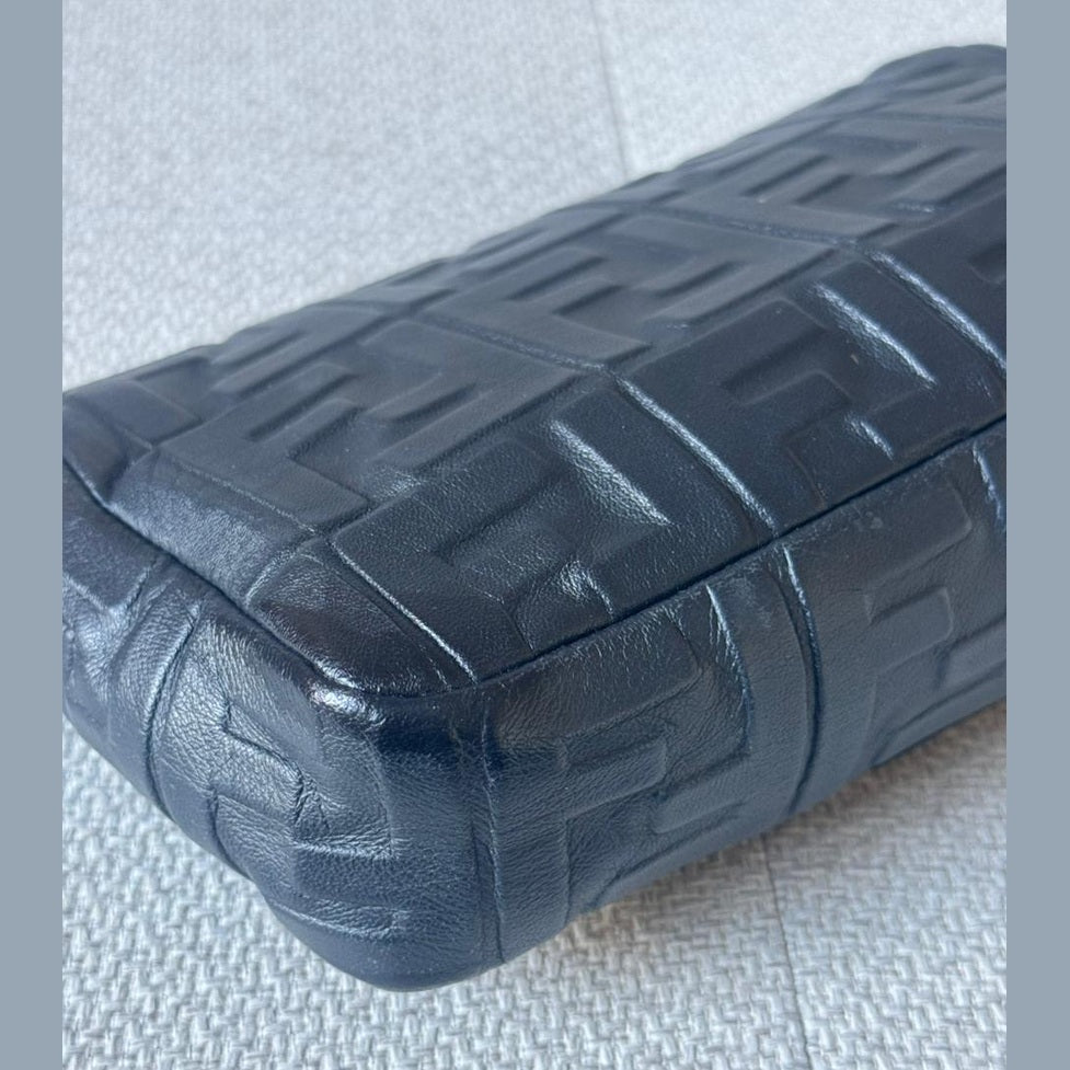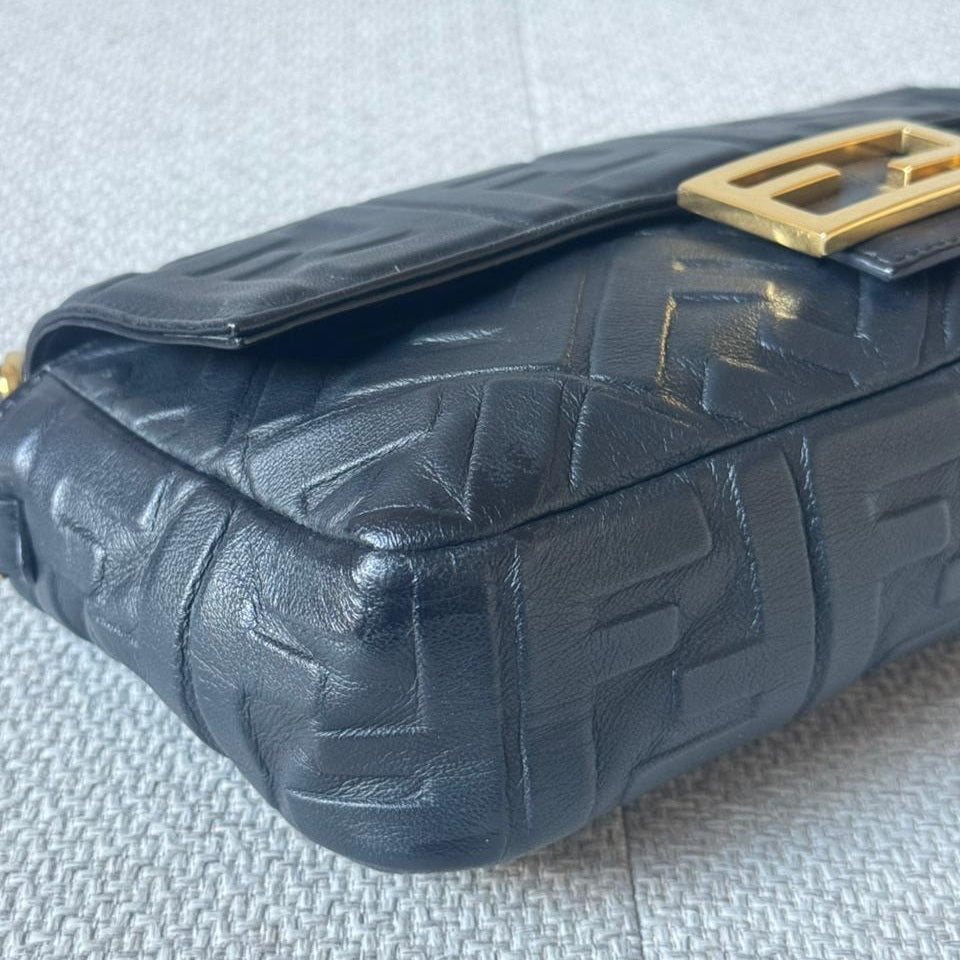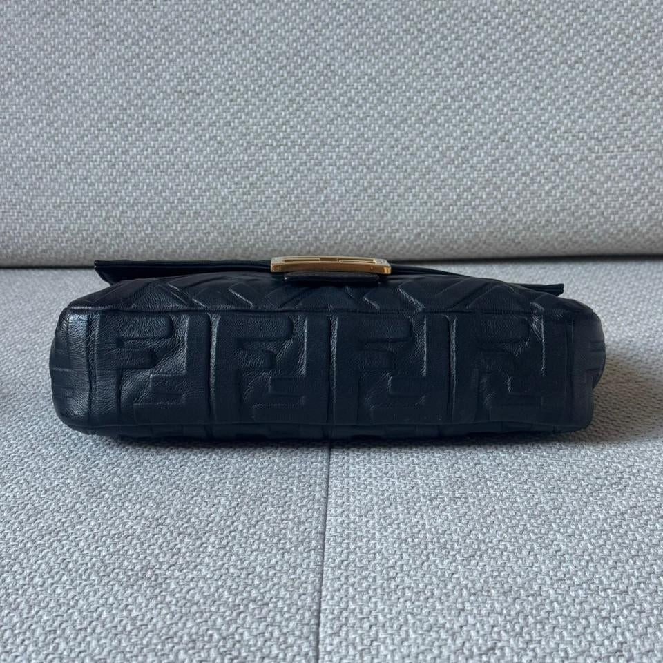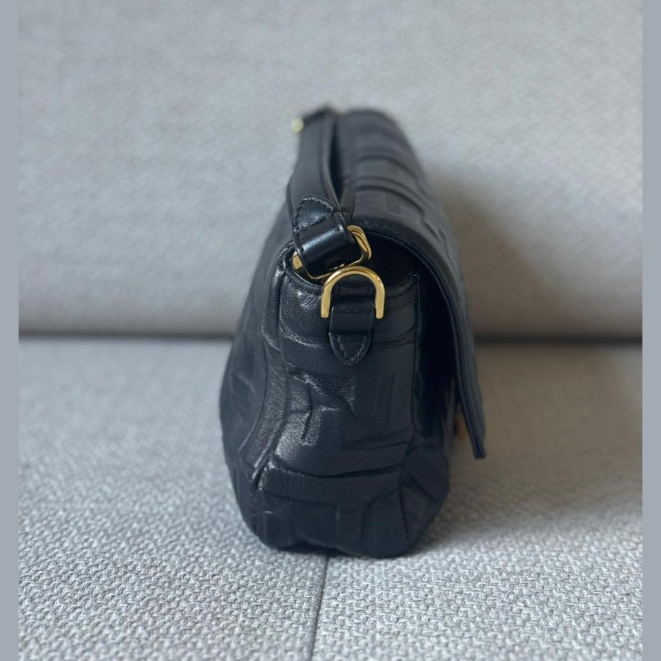 An iconic Fendi design, the Baguette Bag is crafted from supple black embossed nappa leather, offering a refined yet versatile silhouette. Finished with the signature FF clasp and accompanied by a strap, this timeless piece transitions effortlessly from day to evening.
