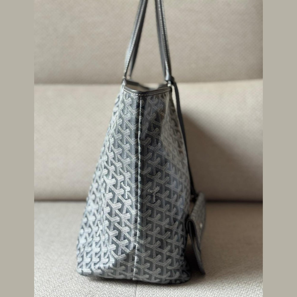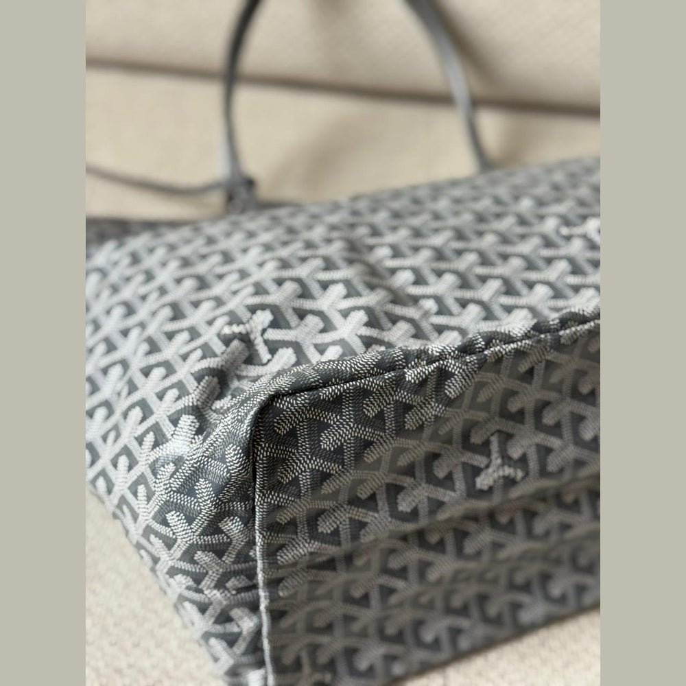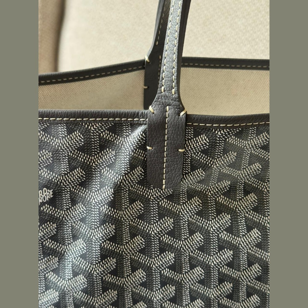 An icon of understated luxury, the Goyard St. Louis GM tote is crafted from the brand’s signature grey Goyardine coated canvas and trimmed with supple leather. Lightweight yet spacious, this timeless tote is designed for everyday versatility, easily fitting essentials, travel items, or work necessities. The open-top design ensures effortless access, while the detachable matching pouch adds practicality and organization. Its distinctive hand-painted chevron pattern and refined craftsmanship make it a true collector’s favorite.
