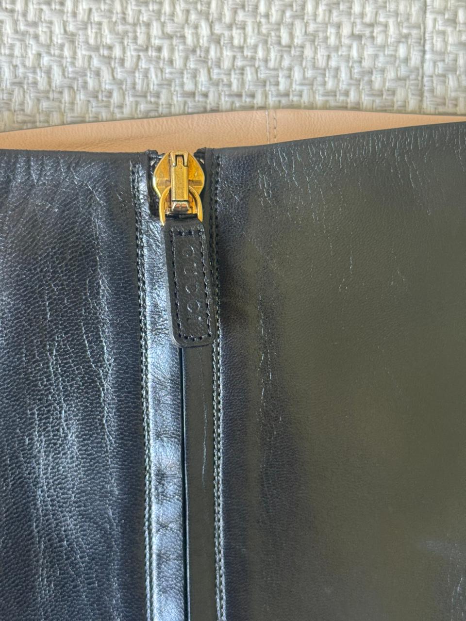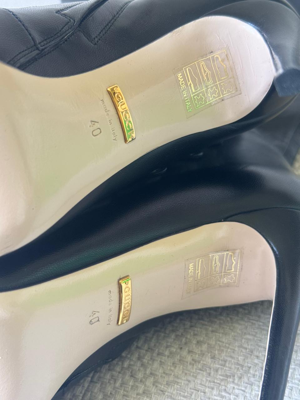 A sophisticated statement piece from Gucci, the Aneta knee-high boots are crafted in smooth black leather and elevated with elegant pearl button detailing along the shaft.