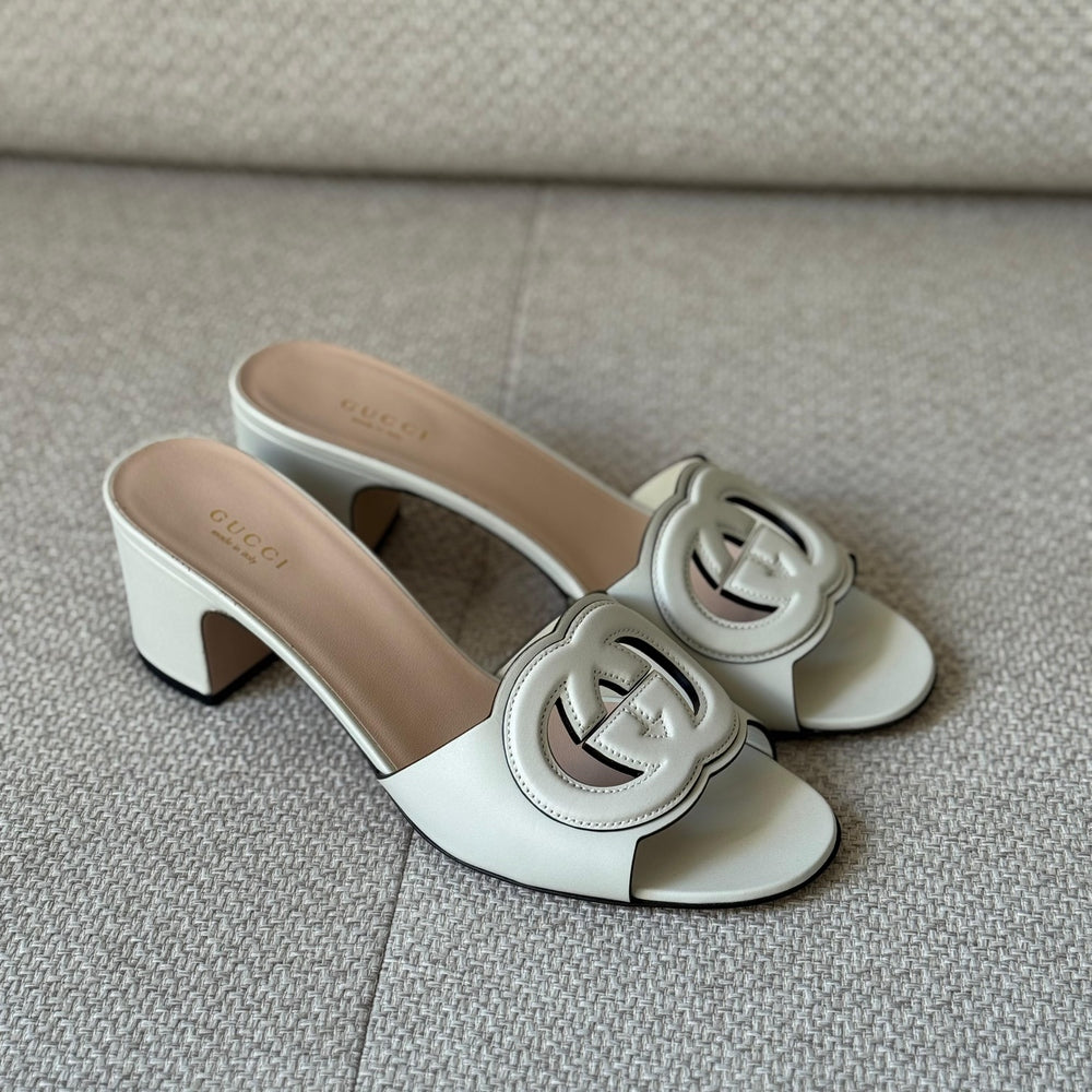 Elegant and versatile, these Gucci mules showcase the House’s timeless craftsmanship and signature detailing. Crafted in smooth ivory leather, the design is elevated by the iconic Interlocking G motif in polished gold-tone hardware, a symbol of Gucci’s rich heritage. A refined choice for both day and evening, these mules pair understated luxury with effortless wearability — the perfect addition to a sophisticated wardrobe.