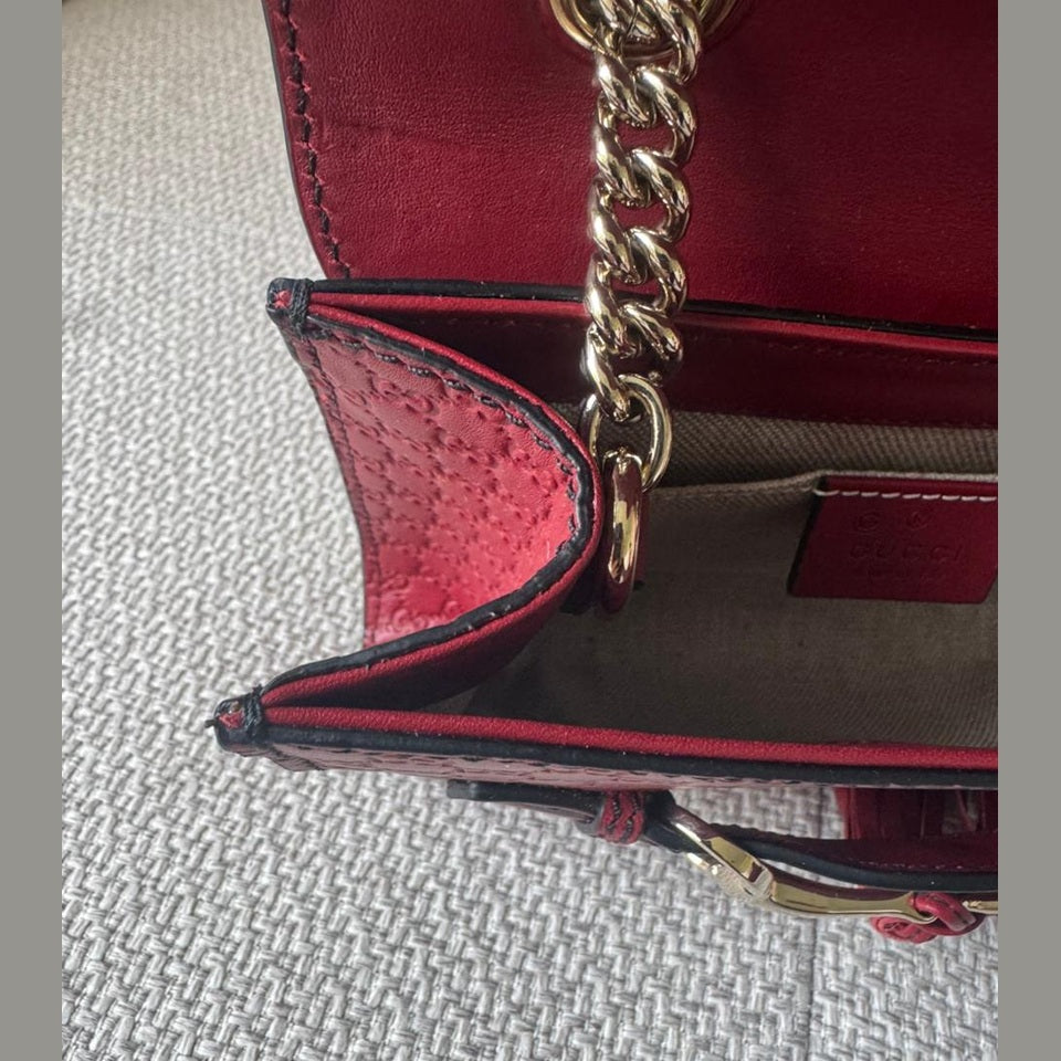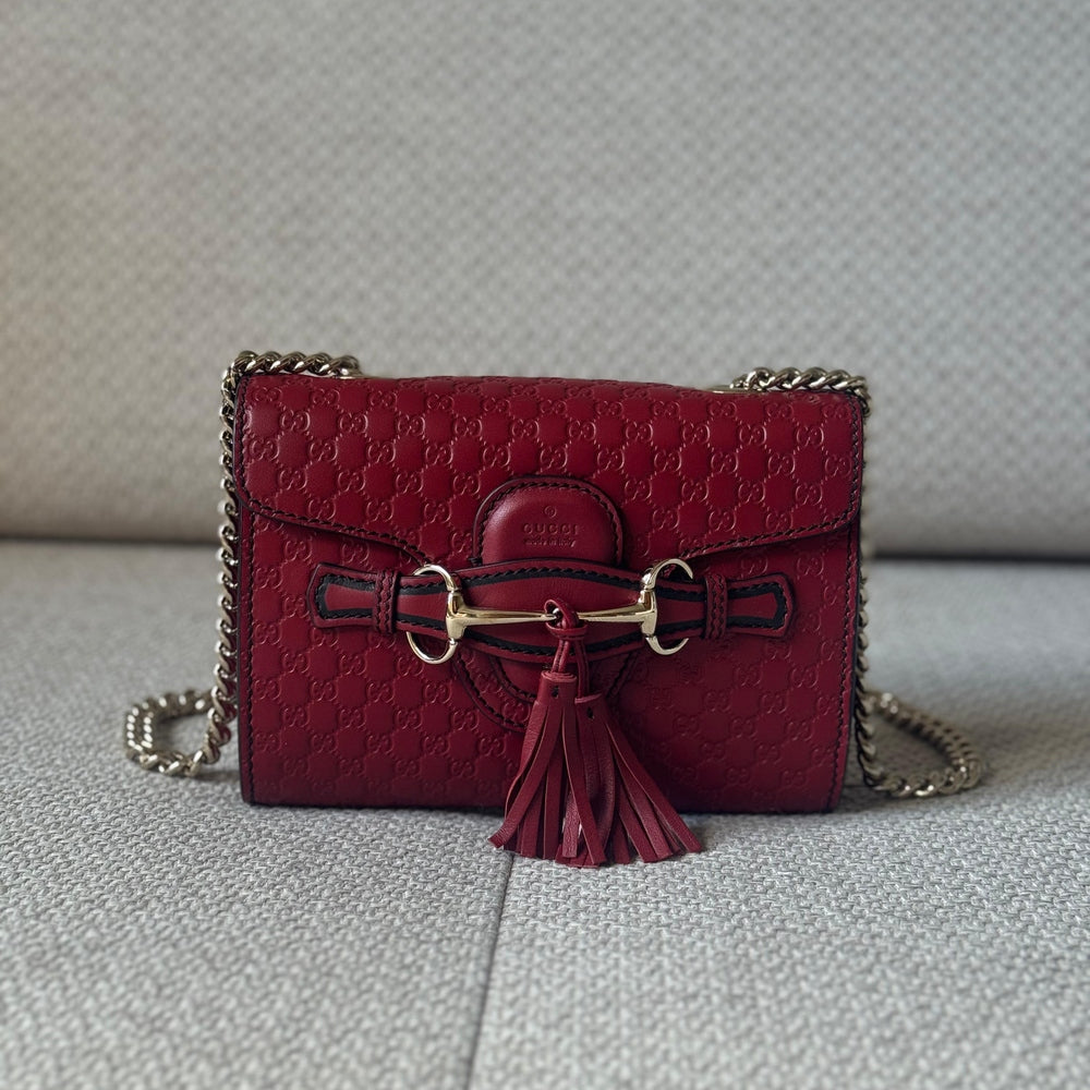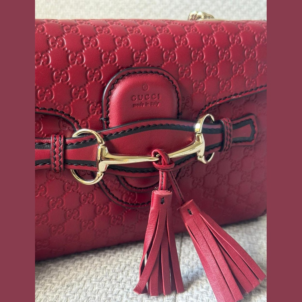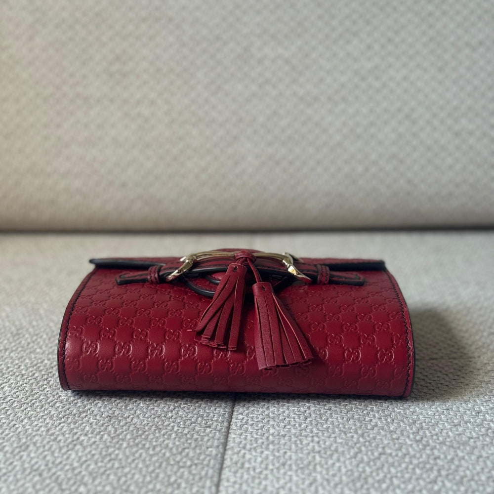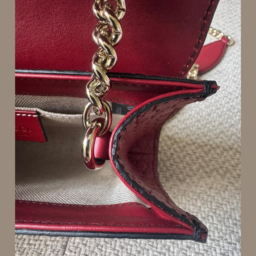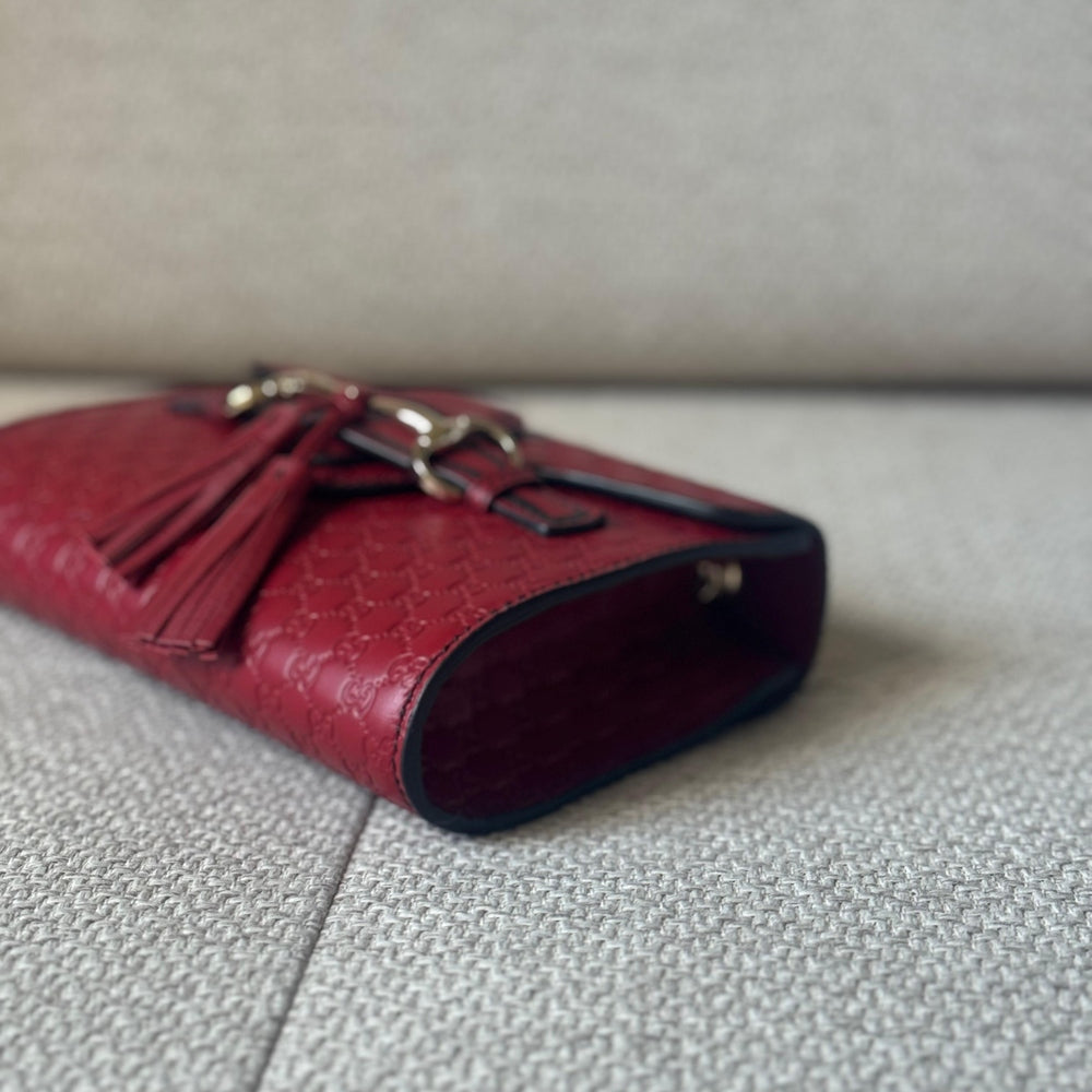 Presenting a vibrant Gucci Mini Emily Bag in Red Microguccissima — a luxe yet playful silhouette that elevates every outfit from daytime chic to evening sophistication. Crafted in Gucci’s signature Microguccissima leather with subtle GG embossing and polished gold-tone hardware, this mini bag delivers Italian craftsmanship and bold style in a compact, wearable size. Perfect for city strolls, dinners, or travel, this bag is brand new with original dust bag, ensuring authenticity and pristine condition.