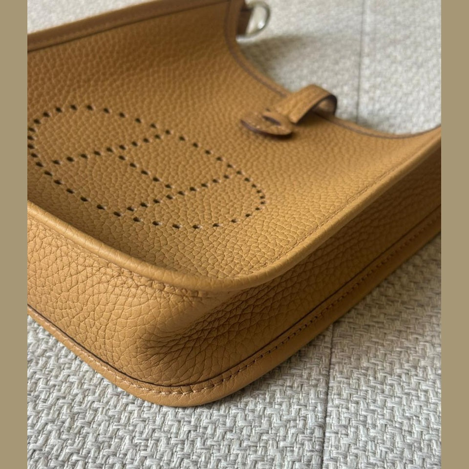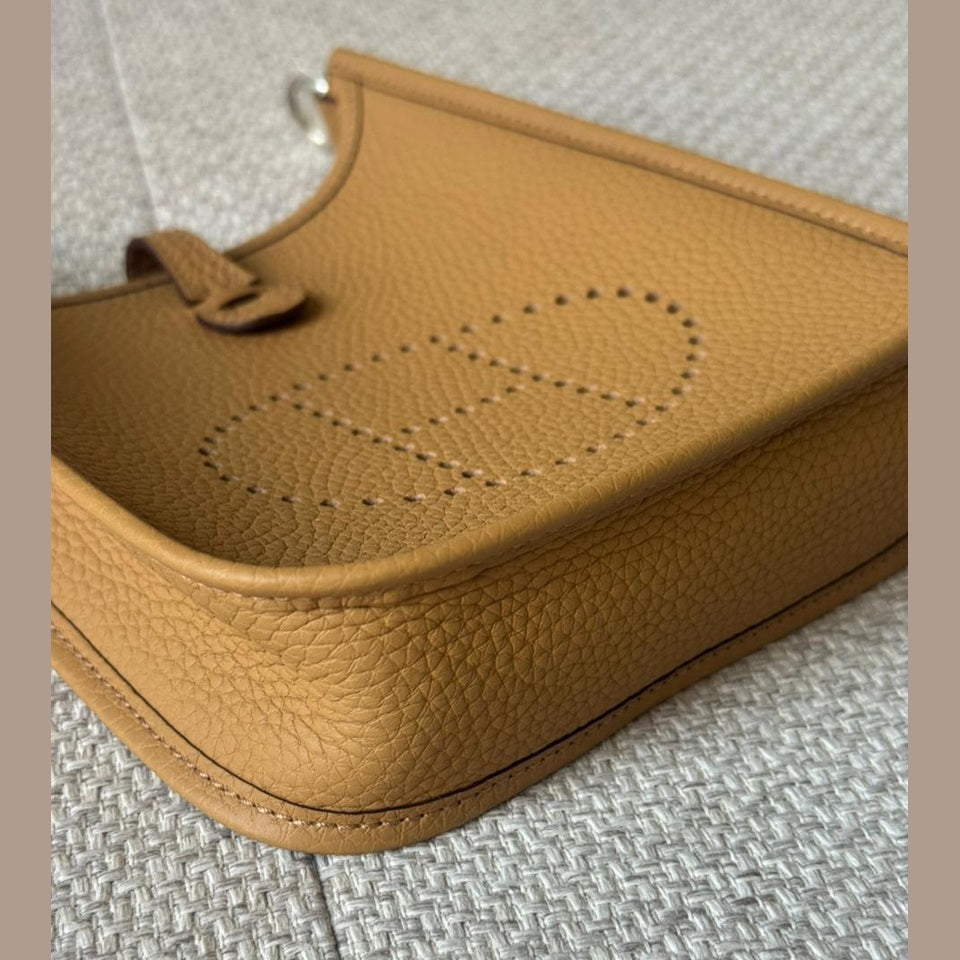A highly sought-after everyday Hermès piece, the Mini Evelyne combines effortless style with practicality. Crafted in soft Clemence leather, the Biscuit shade offers a warm neutral tone that pairs seamlessly with any wardrobe. Finished with palladium hardware and the signature perforated “H” logo, this crossbody design is both lightweight and versatile.