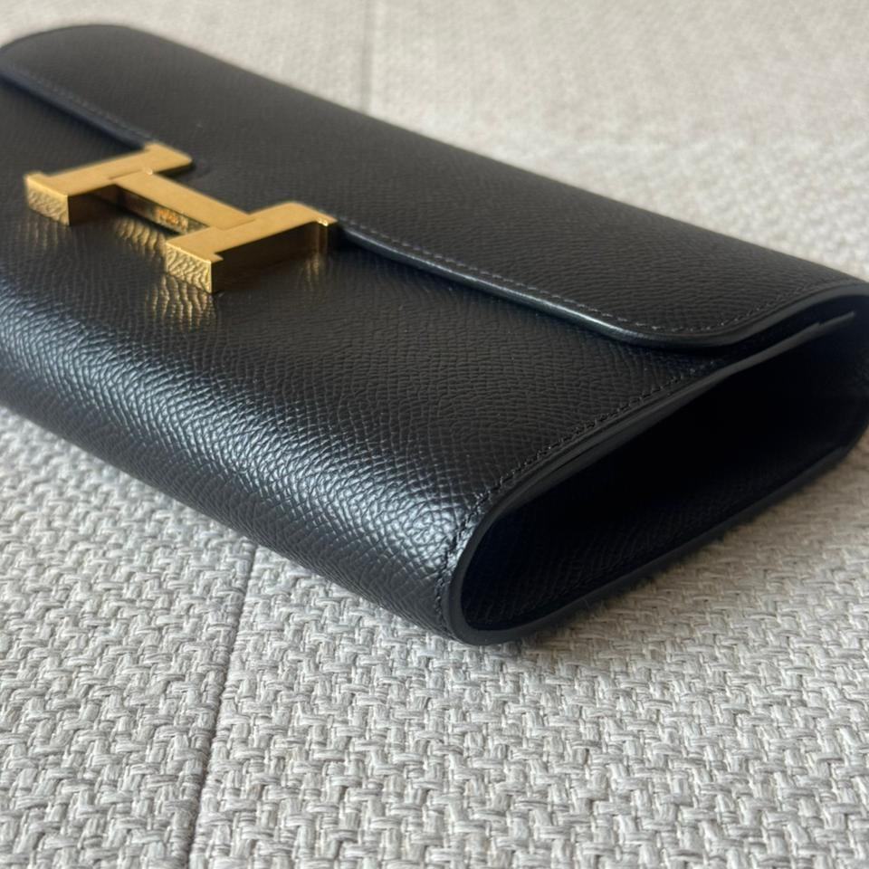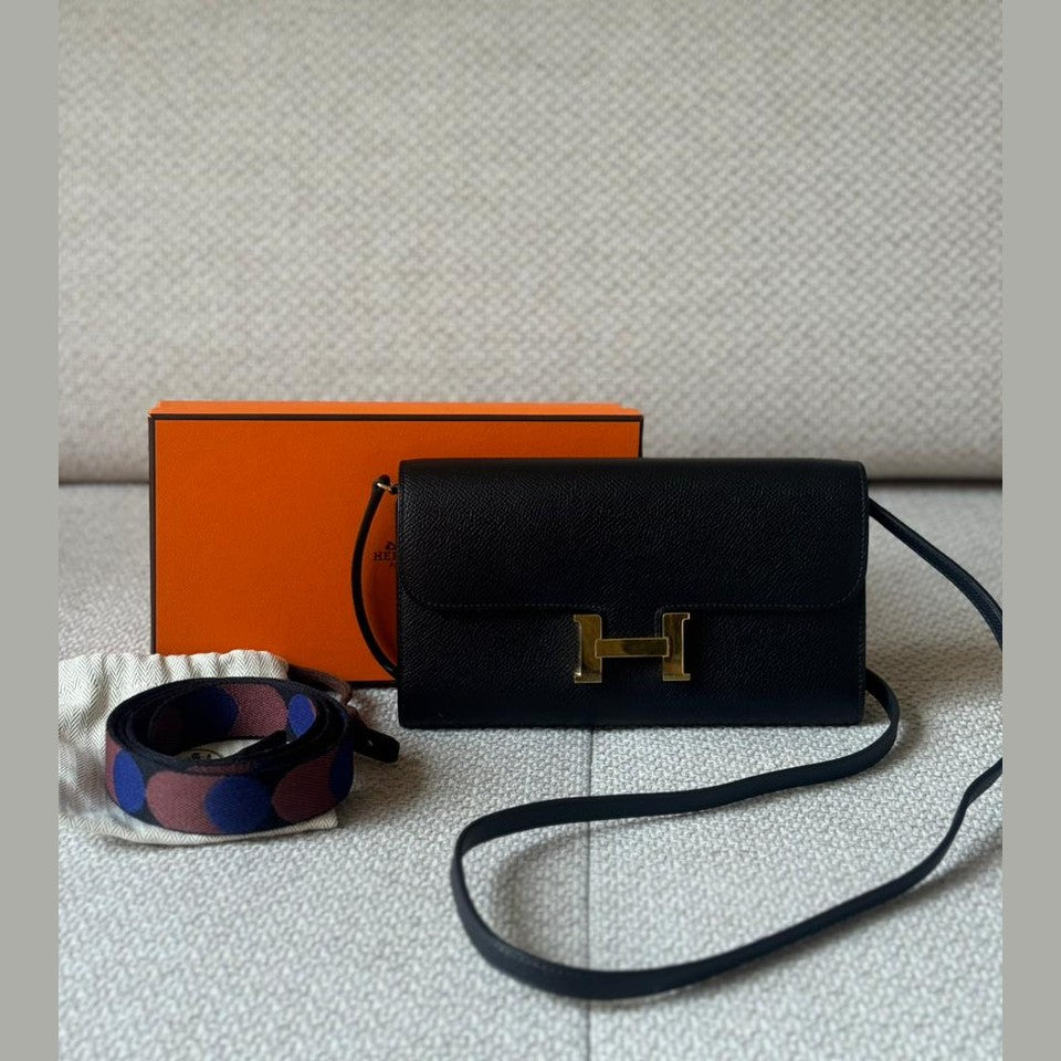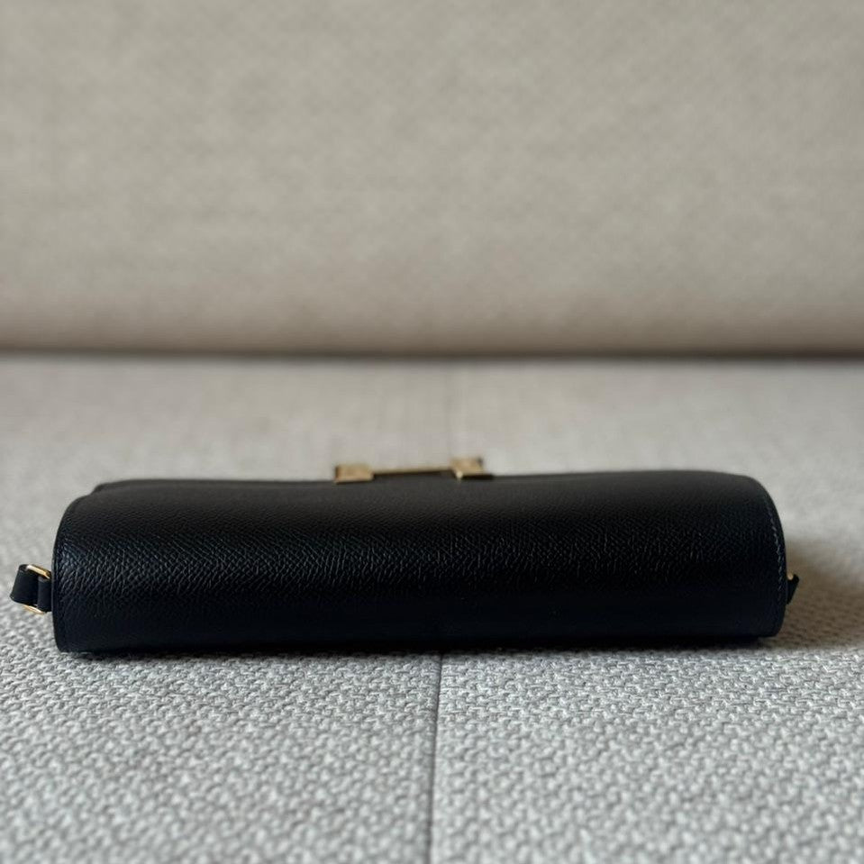 An icon of understated elegance, the Hermès Constance To Go combines timeless design with exceptional practicality. Crafted in structured black Epsom leather and finished with signature gold hardware, this compact yet versatile piece transitions effortlessly from day to evening. Designed to be worn crossbody, over the shoulder, or as a clutch, it reflects Hermès’ mastery of refined functionality and enduring style.