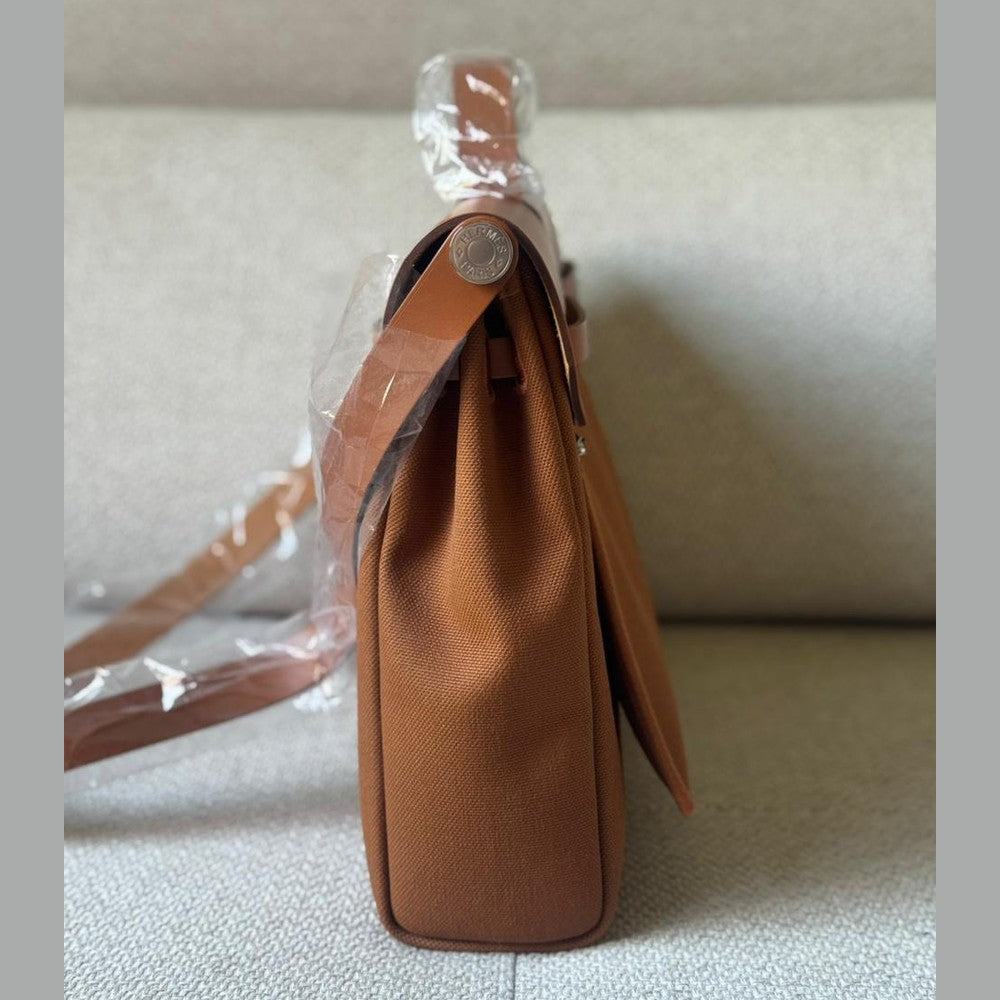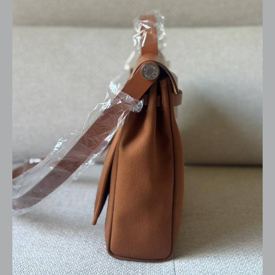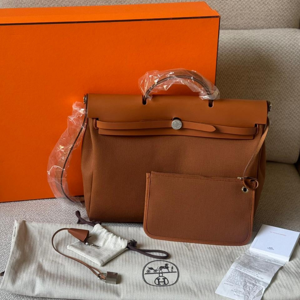 A timeless and practical piece from Hermès, the Herbag 39 combines structured elegance with everyday functionality. Crafted in durable canvas and complemented by smooth Fauve leather, it offers a refined yet relaxed silhouette. Finished with palladium hardware and the signature closure, making it a versatile addition to any luxury collection, and a perfect travel companion.