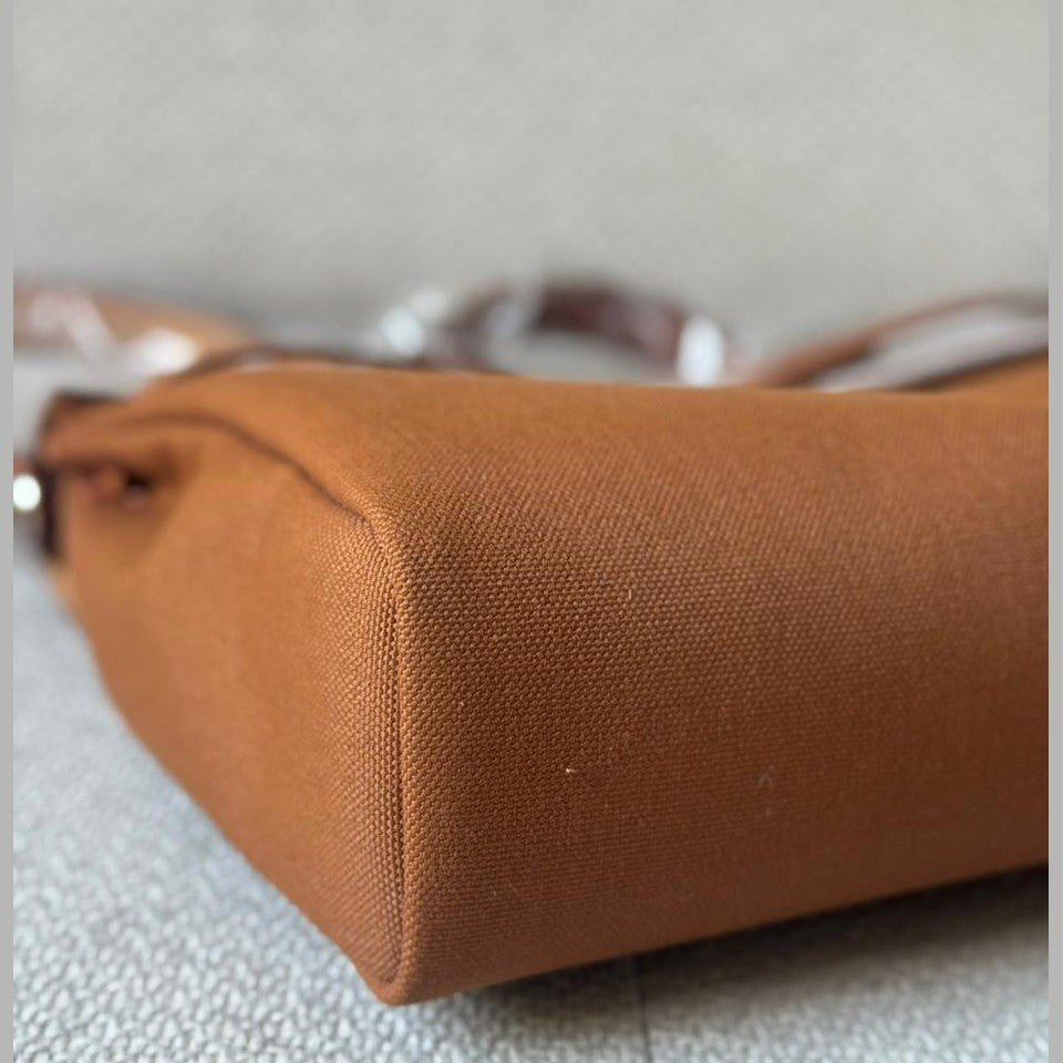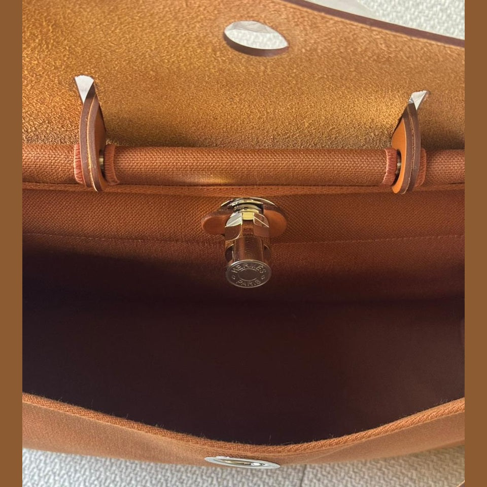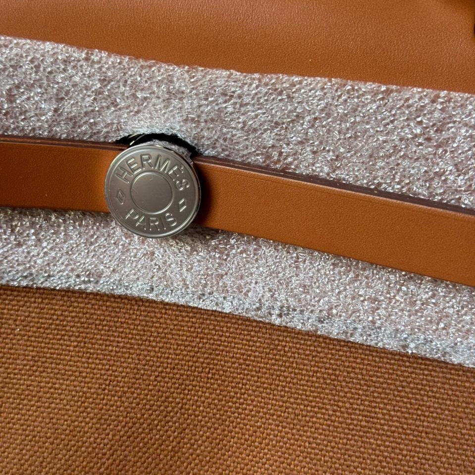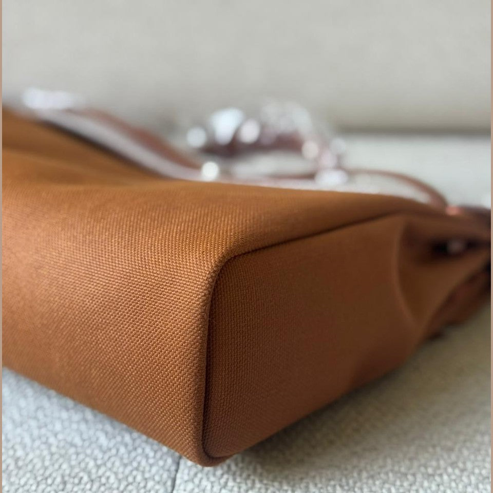 A timeless and practical piece from Hermès, the Herbag 39 combines structured elegance with everyday functionality. Crafted in durable canvas and complemented by smooth Fauve leather, it offers a refined yet relaxed silhouette. Finished with palladium hardware and the signature closure, making it a versatile addition to any luxury collection, and a perfect travel companion.