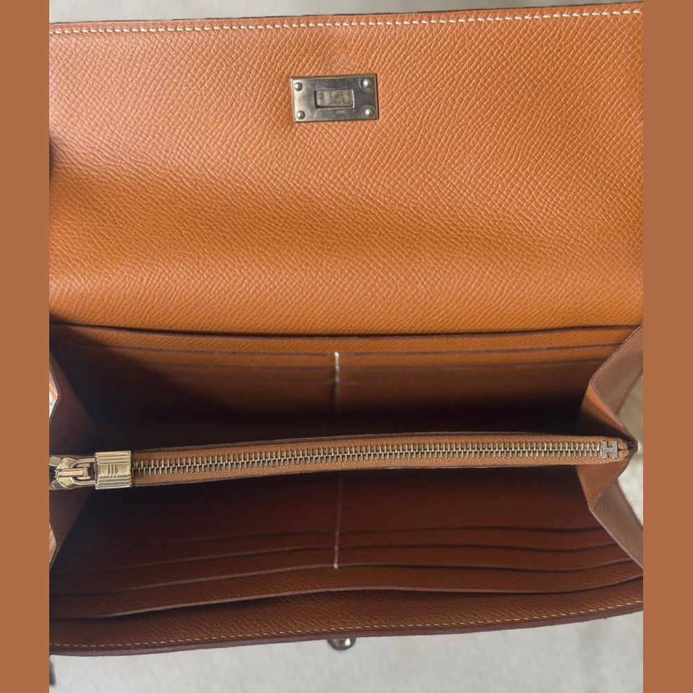 An elegant and timeless Hermès essential, the Kelly Wallet is crafted from structured Gold Epsom leather and finished with sleek palladium hardware. Compact yet refined, this piece reflects the Maison’s exceptional craftsmanship and understated luxury.