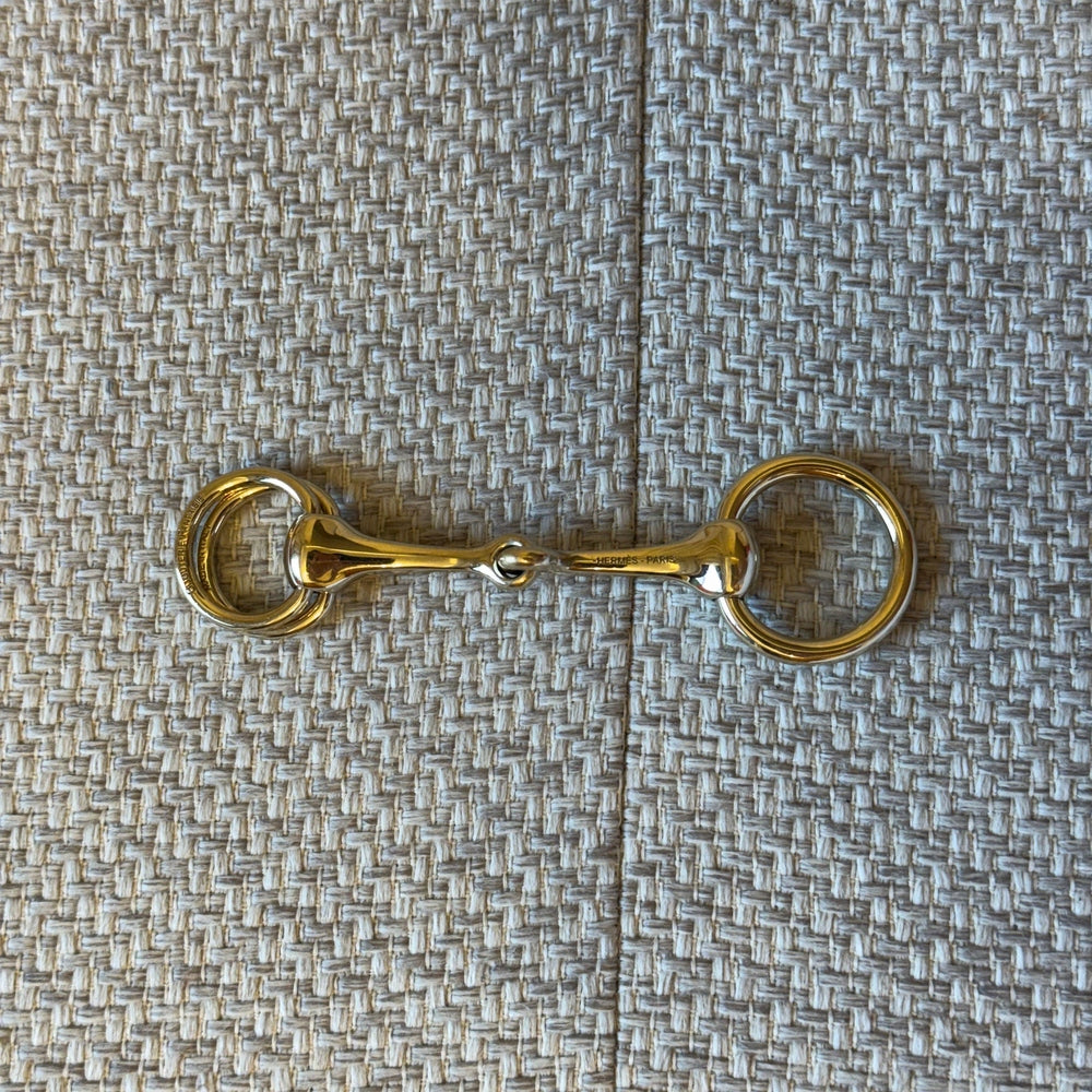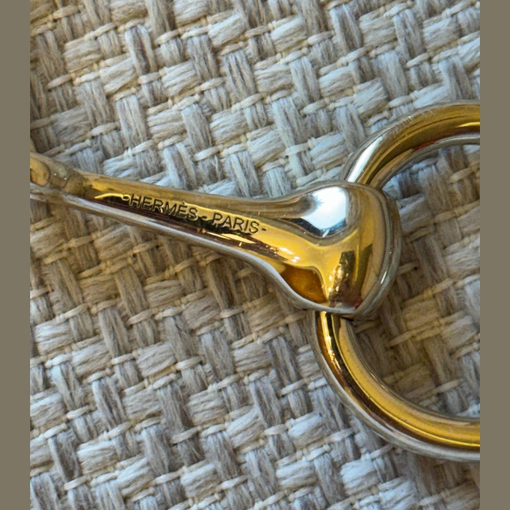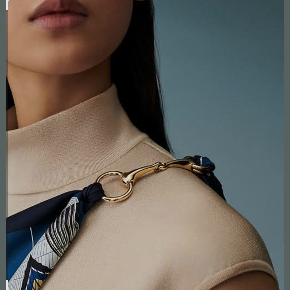 Elevate your silk styling with this elegant Hermès Mors scarf ring, inspired by the house’s equestrian heritage. Crafted in gold-tone metal, this piece is designed to pair perfectly with 90 cm silk scarves, adding a refined and polished finish to any look. A timeless accessory that enhances both classic and modern styling.