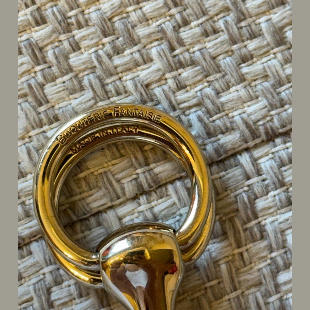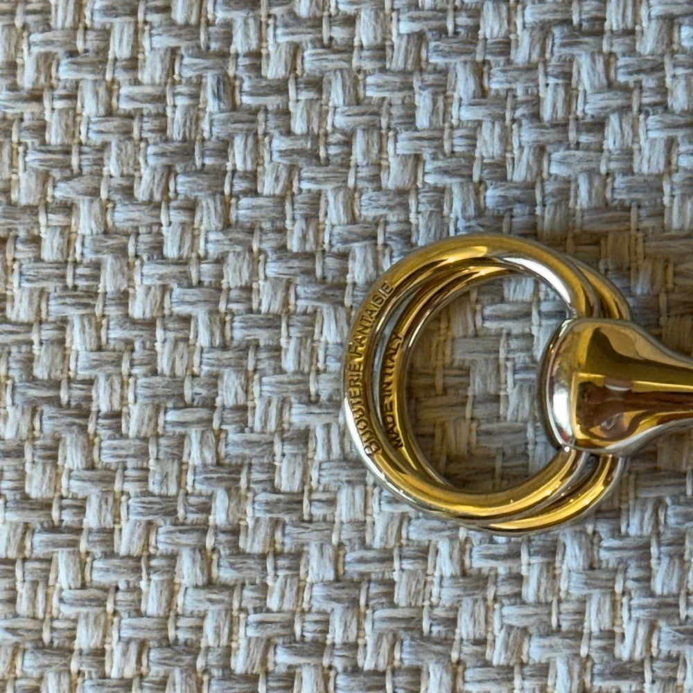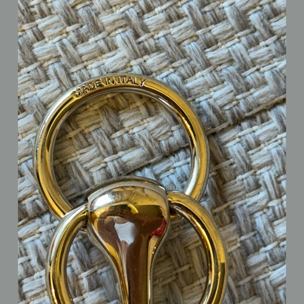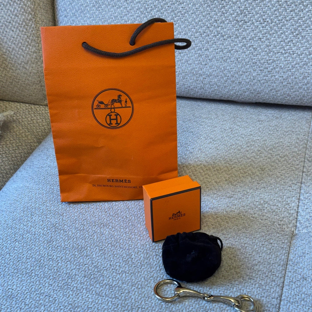 Elevate your silk styling with this elegant Hermès Mors scarf ring, inspired by the house’s equestrian heritage. Crafted in gold-tone metal, this piece is designed to pair perfectly with 90 cm silk scarves, adding a refined and polished finish to any look. A timeless accessory that enhances both classic and modern styling.