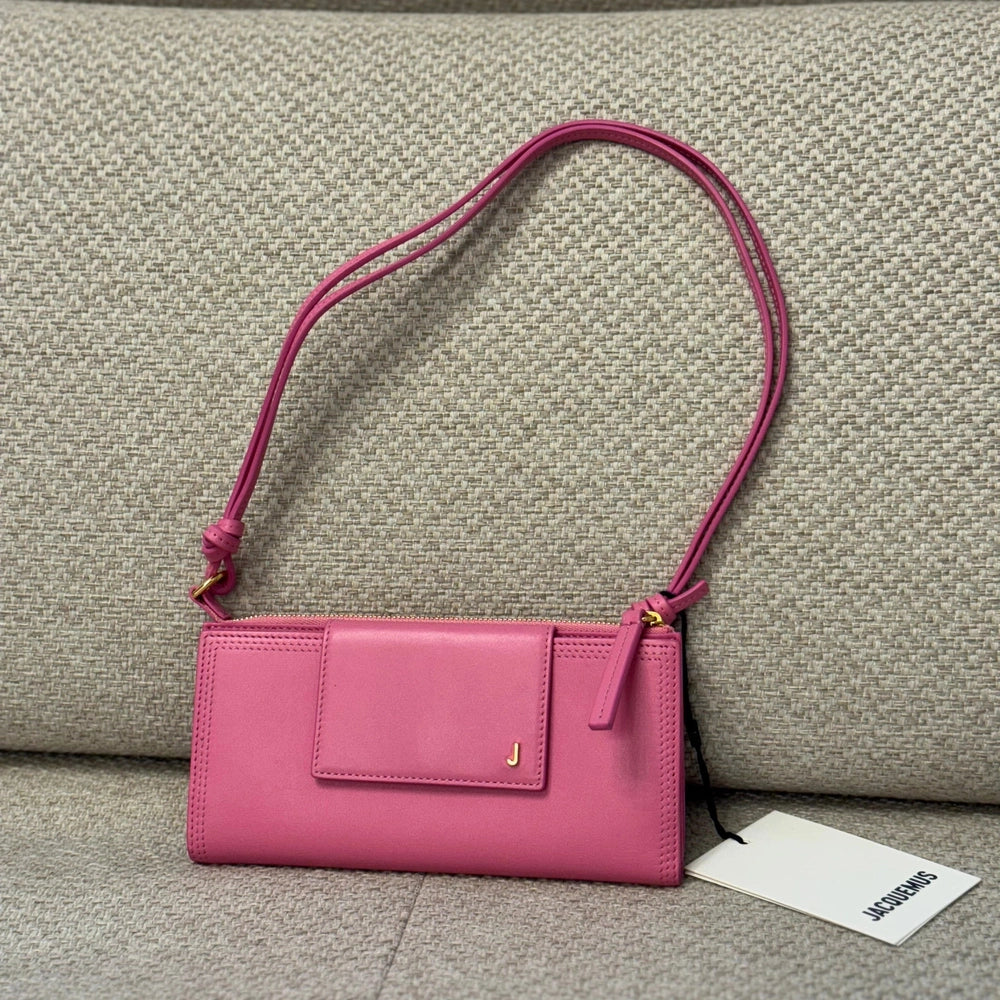Experience the perfect blend of style and functionality with the Jacquemus Pink Mini Le Pichoto. Crafted with expert precision, this mini bag features a sophisticated pink hue that adds a pop of color to any outfit. Its compact design allows for easy portability, featuring 6 card slots, money slip pocket, and 2 zipped pockets. Comes with dustbag and tag.