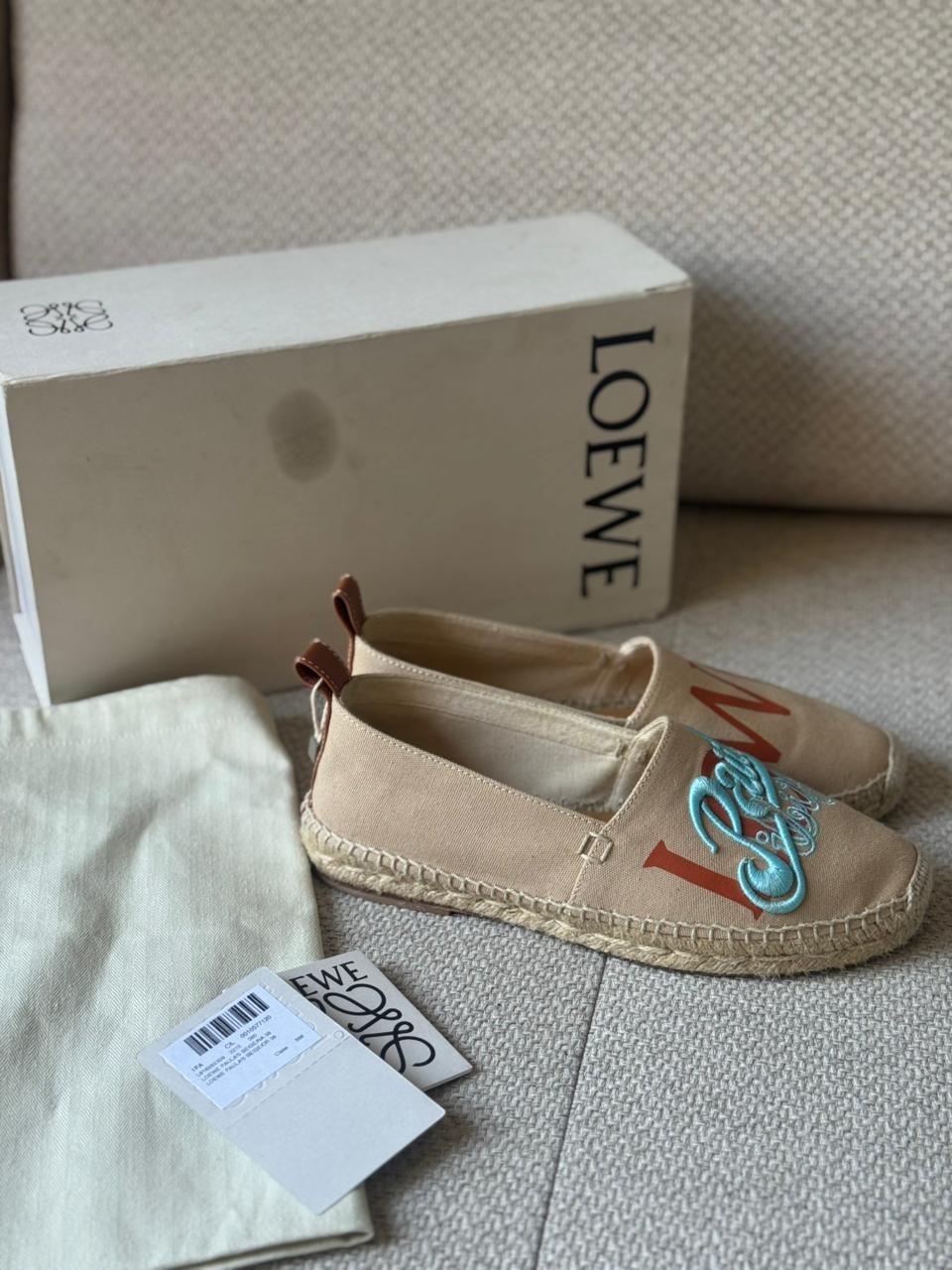 Part of Loewe’s cult-favorite Paula’s Ibiza collection, these espadrilles capture the brand’s relaxed Mediterranean spirit with a refined, fashion-forward twist. Designed for warm days and easy styling, they blend casual comfort with unmistakable luxury—perfect for resort wear, city strolls, or weekend escapes.