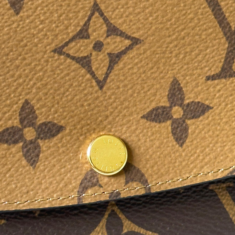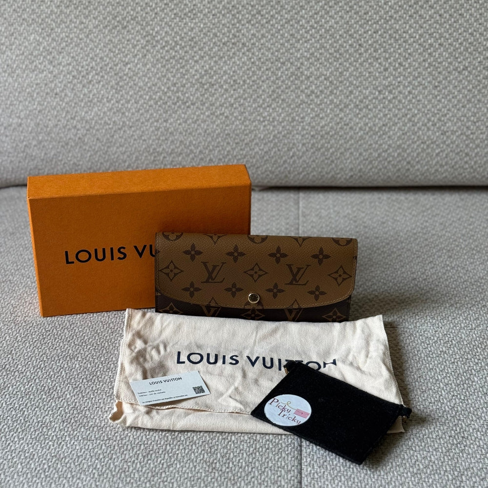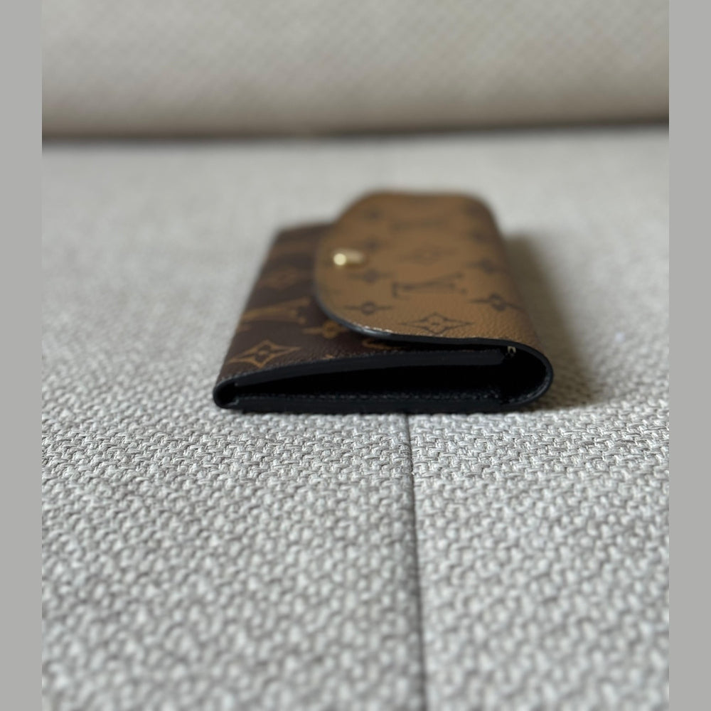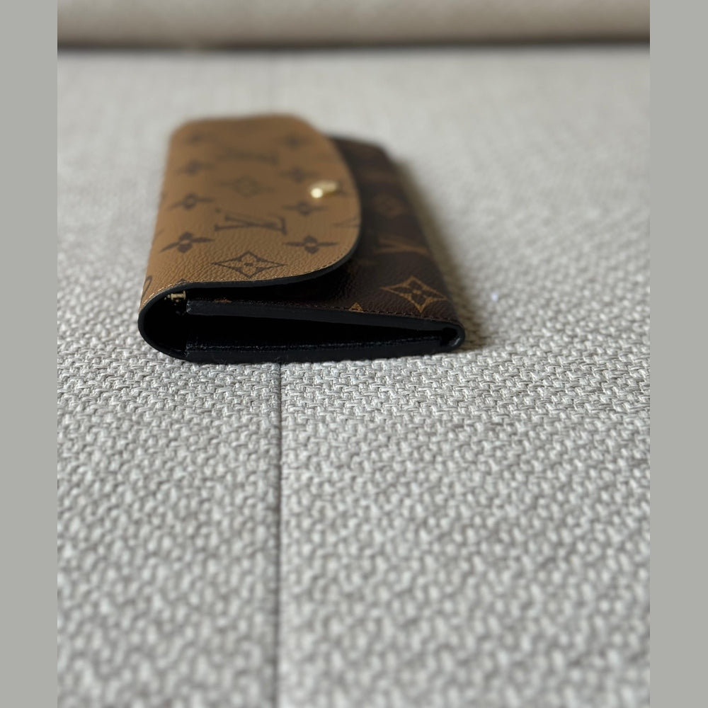 The Louis Vuitton Emilie Wallet is a timeless and practical essential crafted from the House’s iconic Monogram and Reverse Monogram canvas. Its slim silhouette and elegant two-tone design make it a refined everyday companion, offering both style and functionality in one streamlined piece.