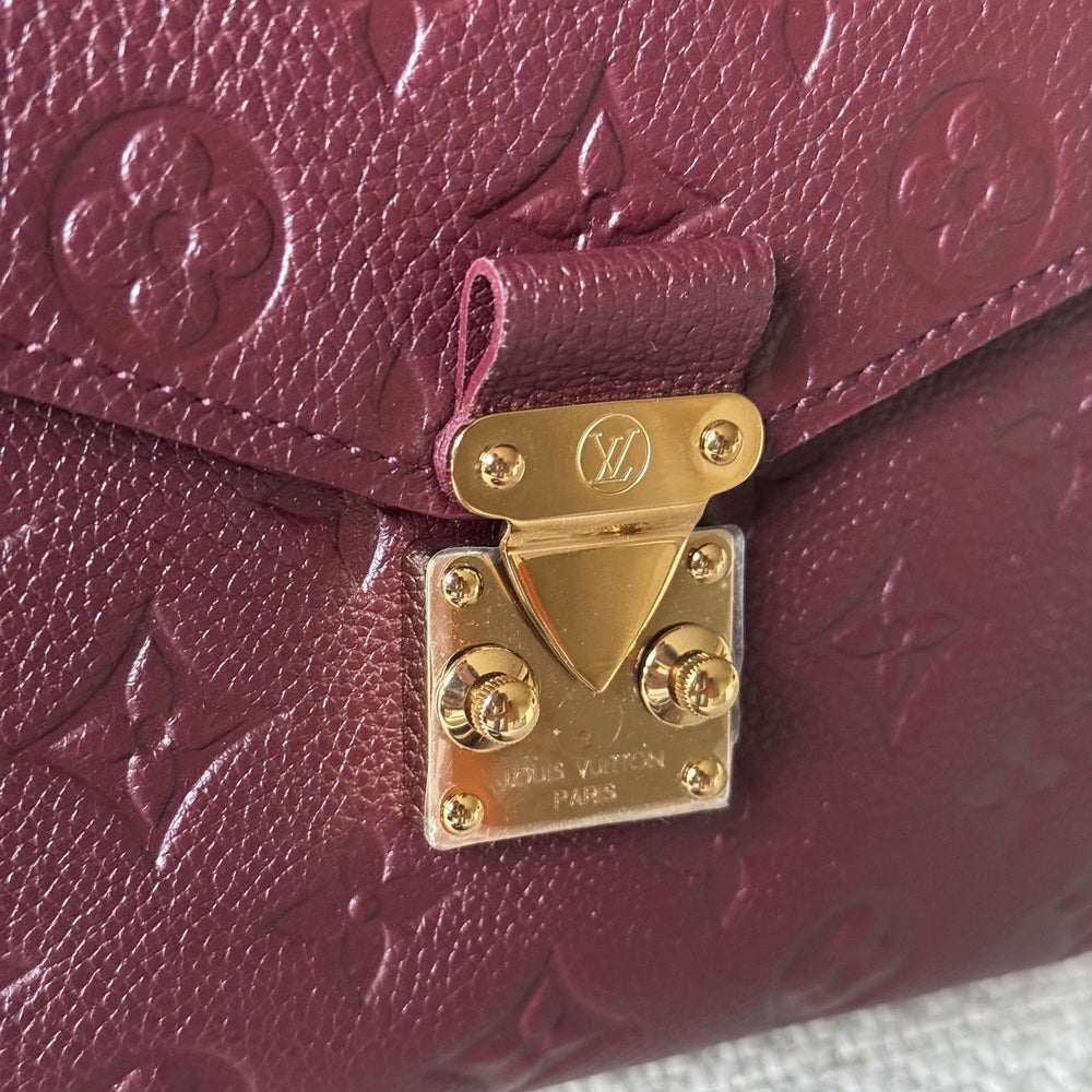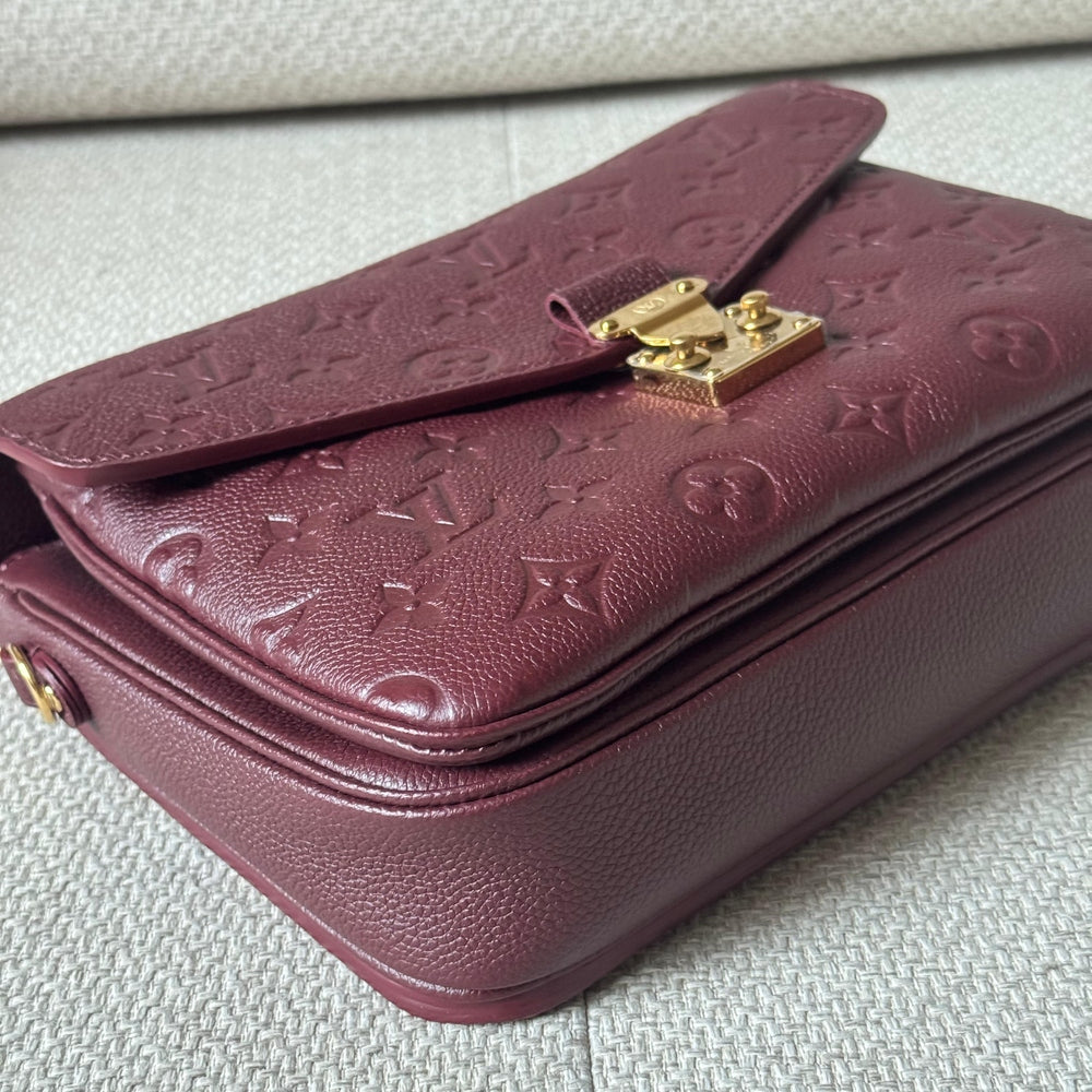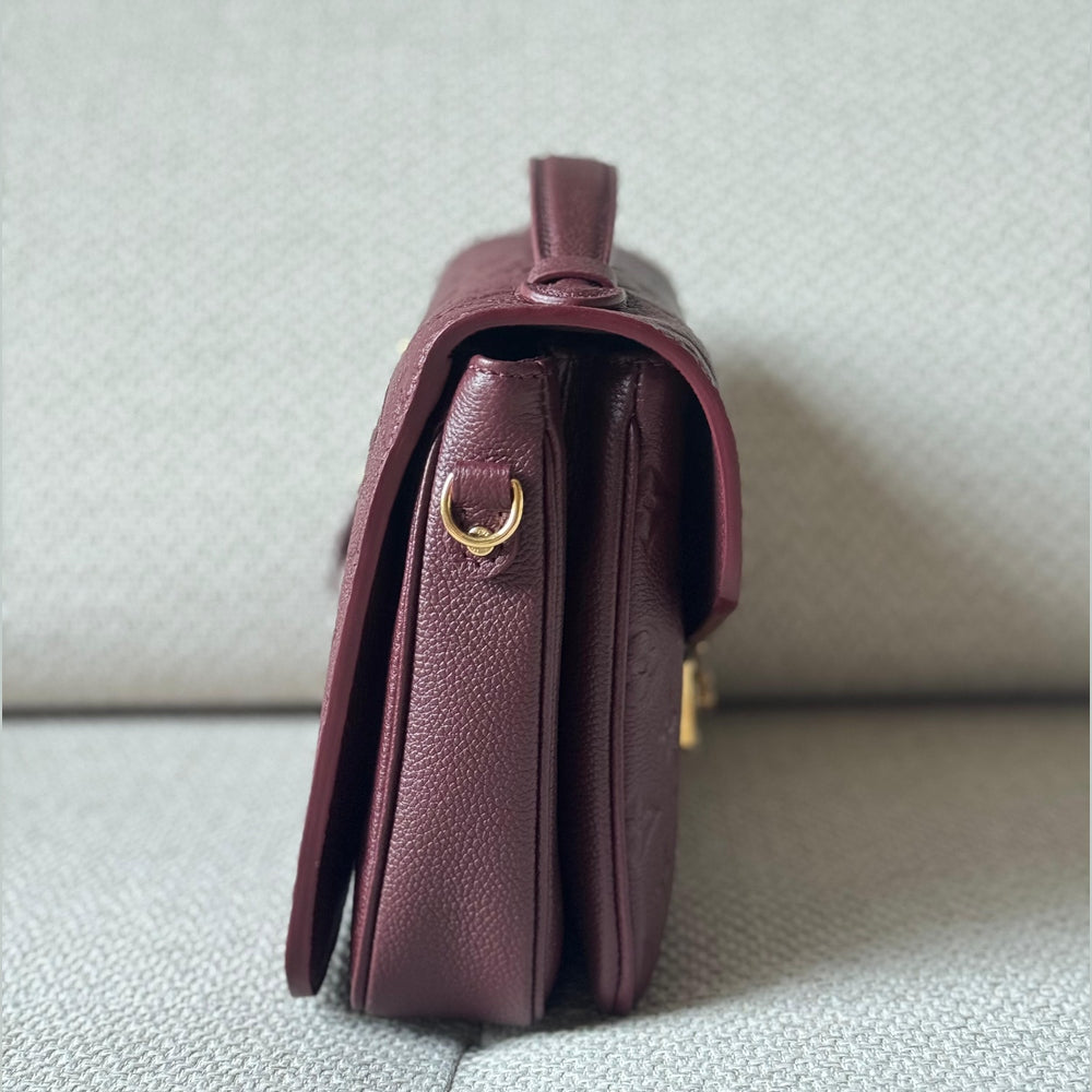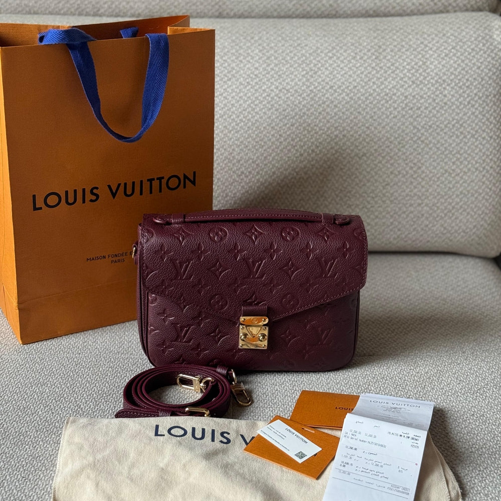 One of Louis Vuitton’s most iconic and hard-to-find designs, the Pochette Métis in the luxurious Grenat shade is a masterpiece crafted in rich Monogram Empreinte leather. Its deep burgundy tone paired with gold hardware gives it an effortlessly elegant, timeless appeal.
