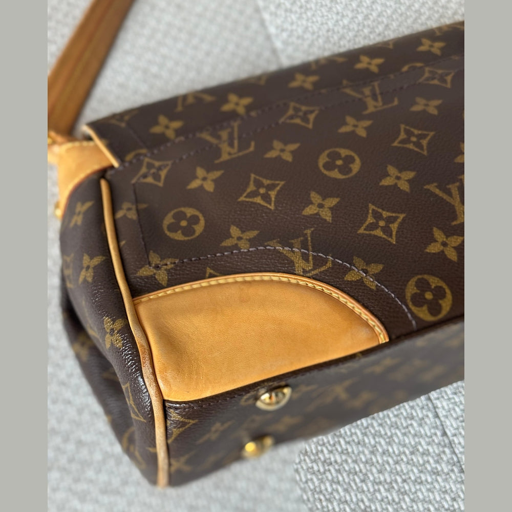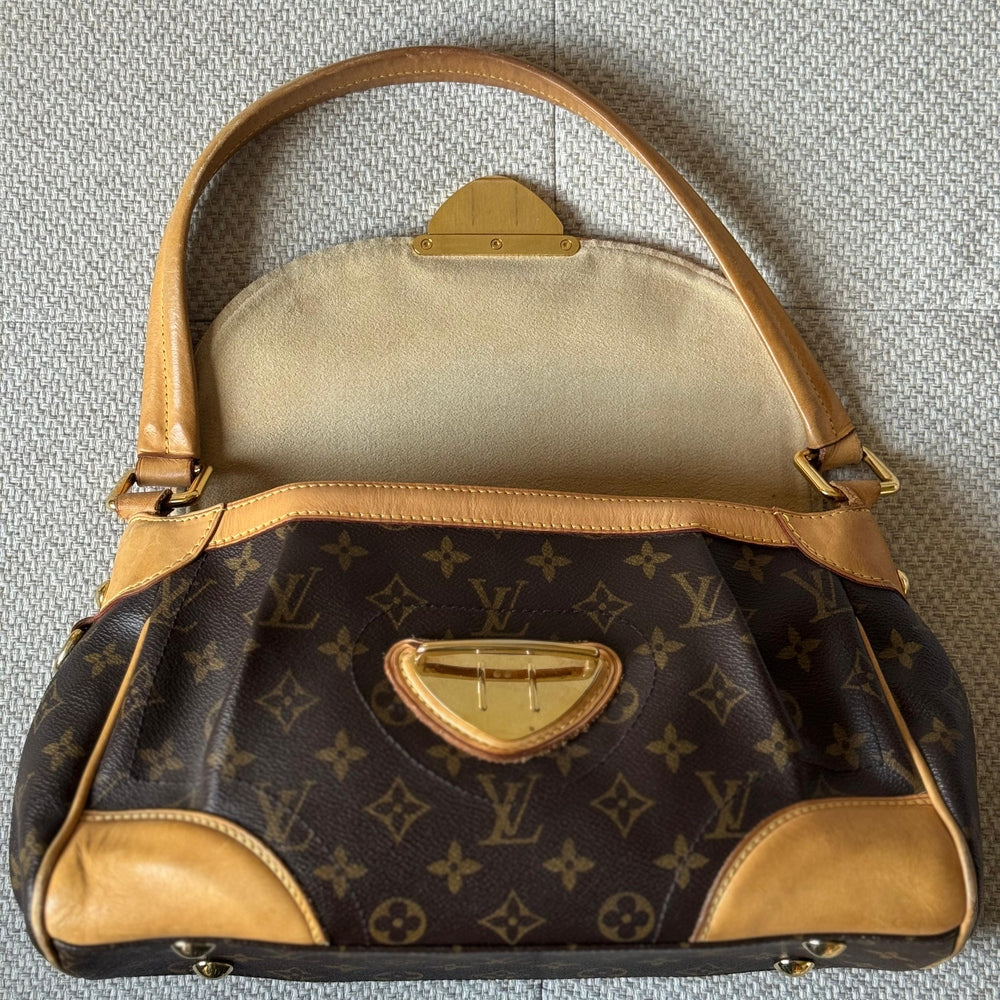 A beautifully structured Louis Vuitton Beverly MM crafted in the iconic Monogram canvas with smooth natural Vachetta leather trim. Known for its elegant curved flap, refined silhouette, and signature gold-tone push-lock closure, this model blends classic LV heritage with everyday practicality.