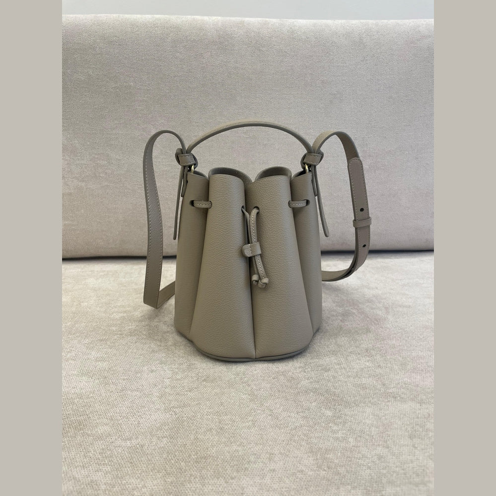 Refined and sculptural, the Mini Numéro Huit by Polène reimagines the classic bucket silhouette with modern minimalism. Expertly crafted in textured taupe calfskin leather, the bag features a softly structured body with elegant gathered pleats, showcasing the brand’s mastery of leatherwork and form. Designed for both style and versatility, it offers multiple carrying options with its top handle and adjustable crossbody strap, making it perfect for day-to-night wear.