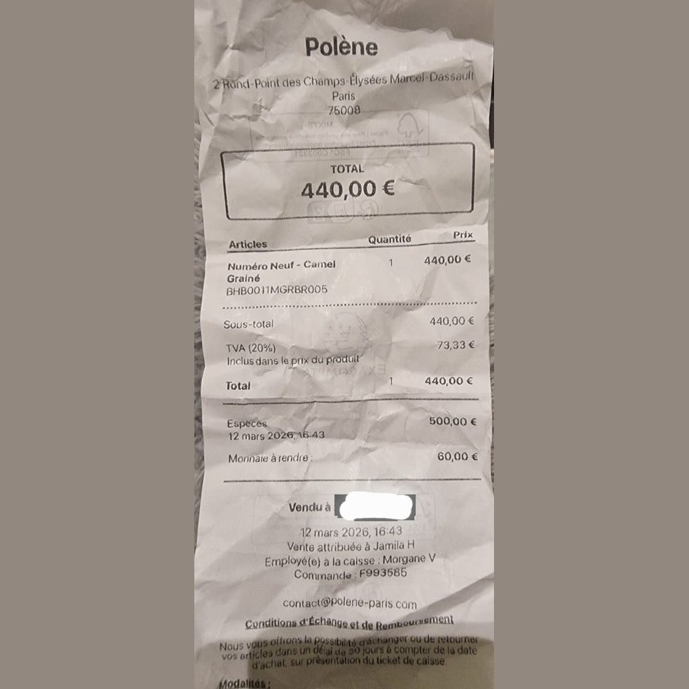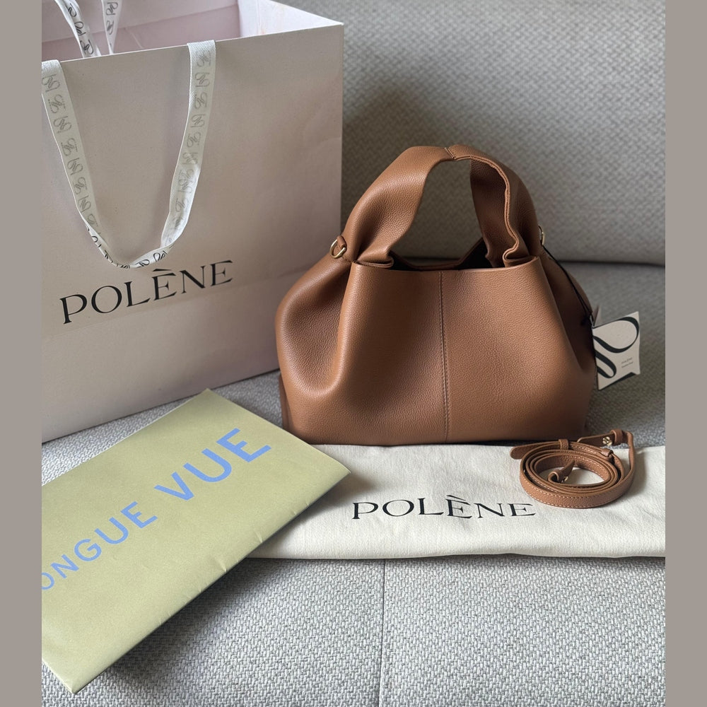 A signature silhouette from Polène, the Numéro Neuf is defined by its sculptural, draped design—crafted from a single panel of leather that creates its iconic curved structure. Both artistic and functional, it reflects the brand’s dedication to minimalist architecture and refined craftsmanship.