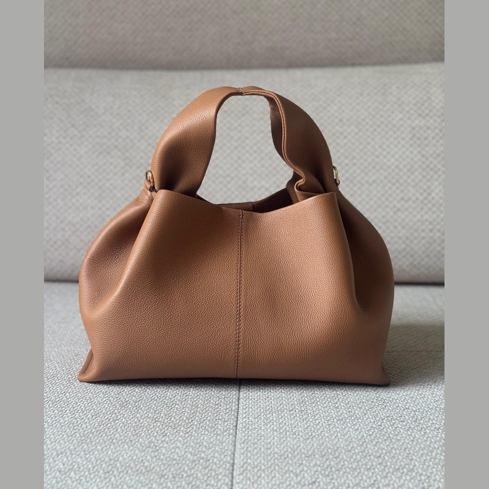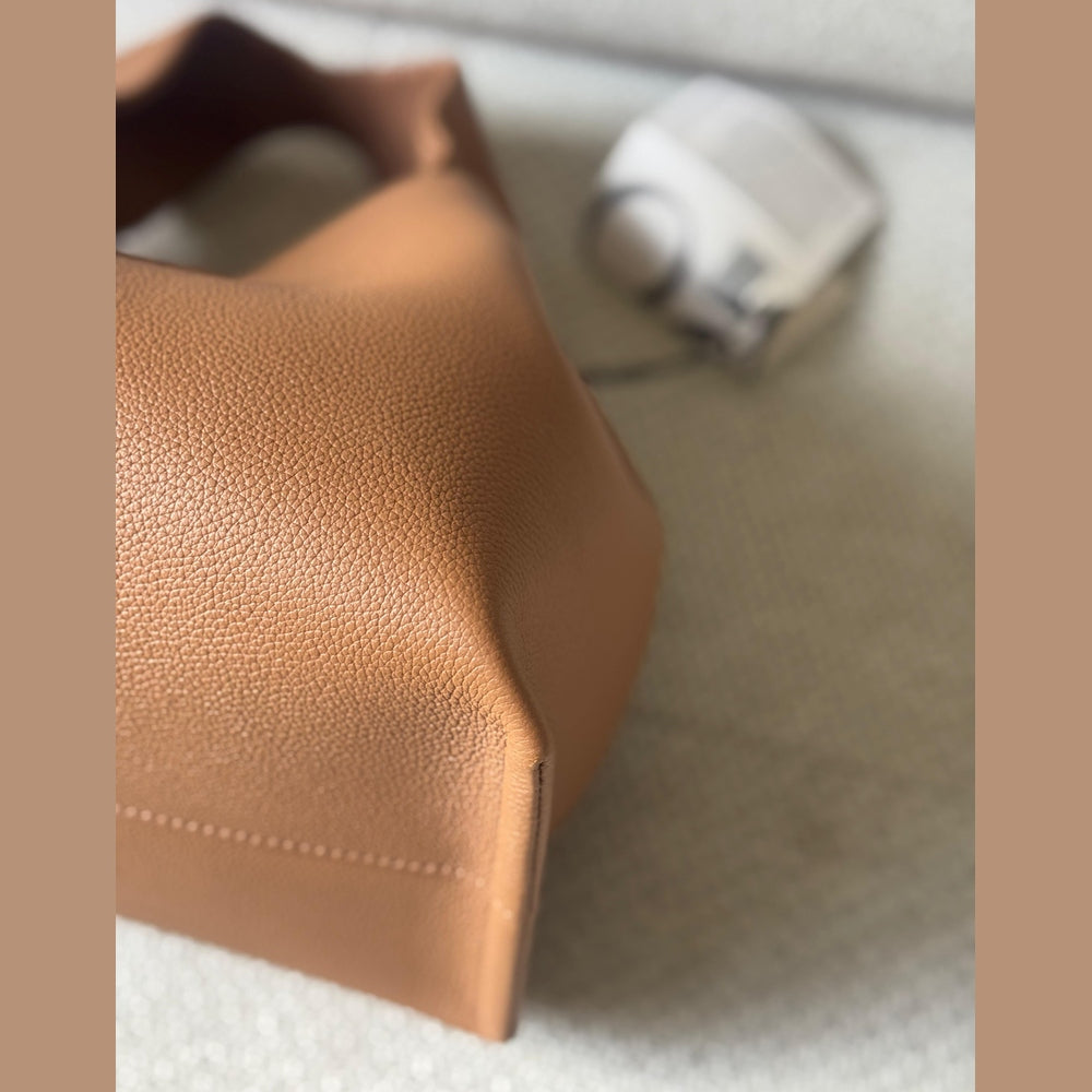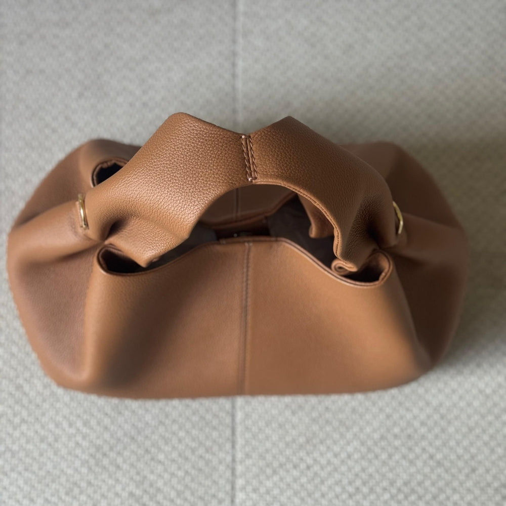 The textured camel shade adds warmth and versatility, making it a timeless everyday piece that transitions effortlessly from day to evening.