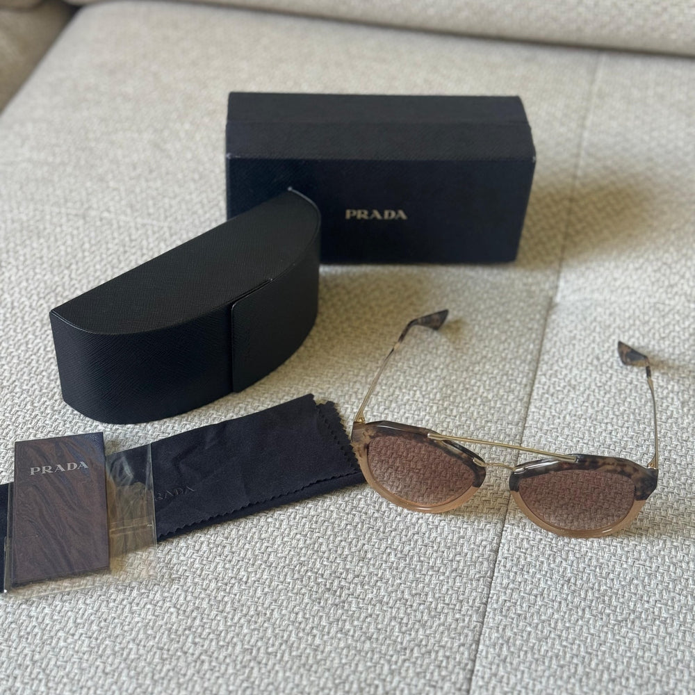 A refined take on a feminine classic, these Prada Gradient Cat-Eye Sunglasses combine sculpted elegance with modern minimalism. The softly structured cat-eye frame flatters the face effortlessly, while the warm gradient lenses add depth and subtle drama.