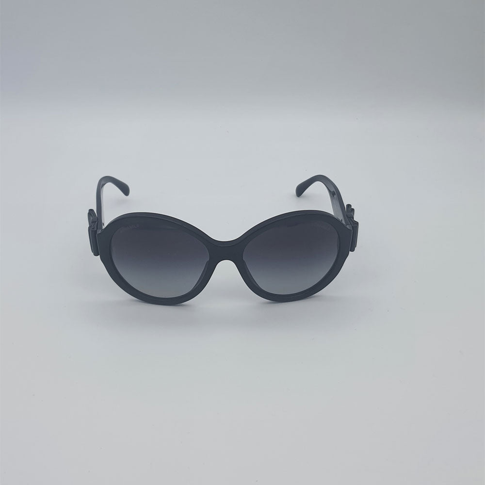 Black round sunglasses, black cc bows on each side. Comes in Excellent condition with dust bag, booklet and box included.