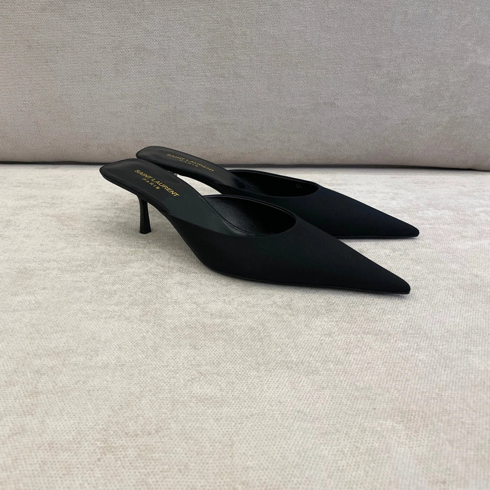 Crafted by industry experts, the Saint Laurent Black Satin Mules are the epitome of luxury. Made with premium black satin, these mules exude sophistication and style. Step out in confidence and elevate your outfit with this timeless and versatile pair.
