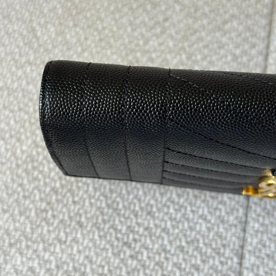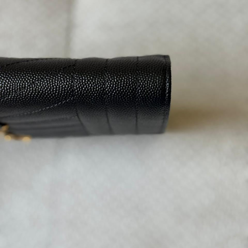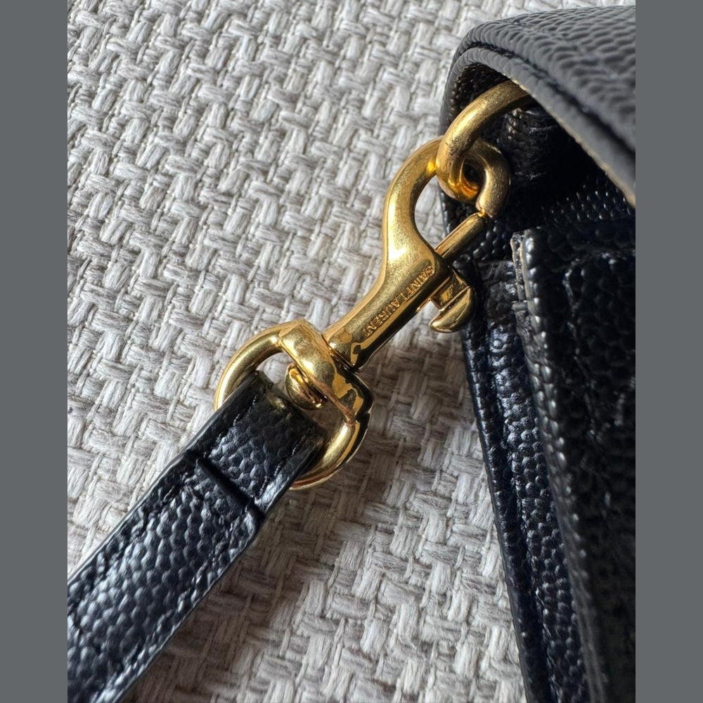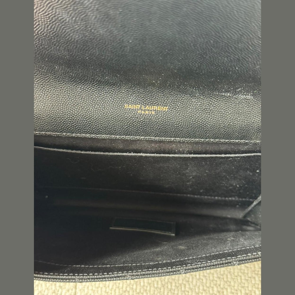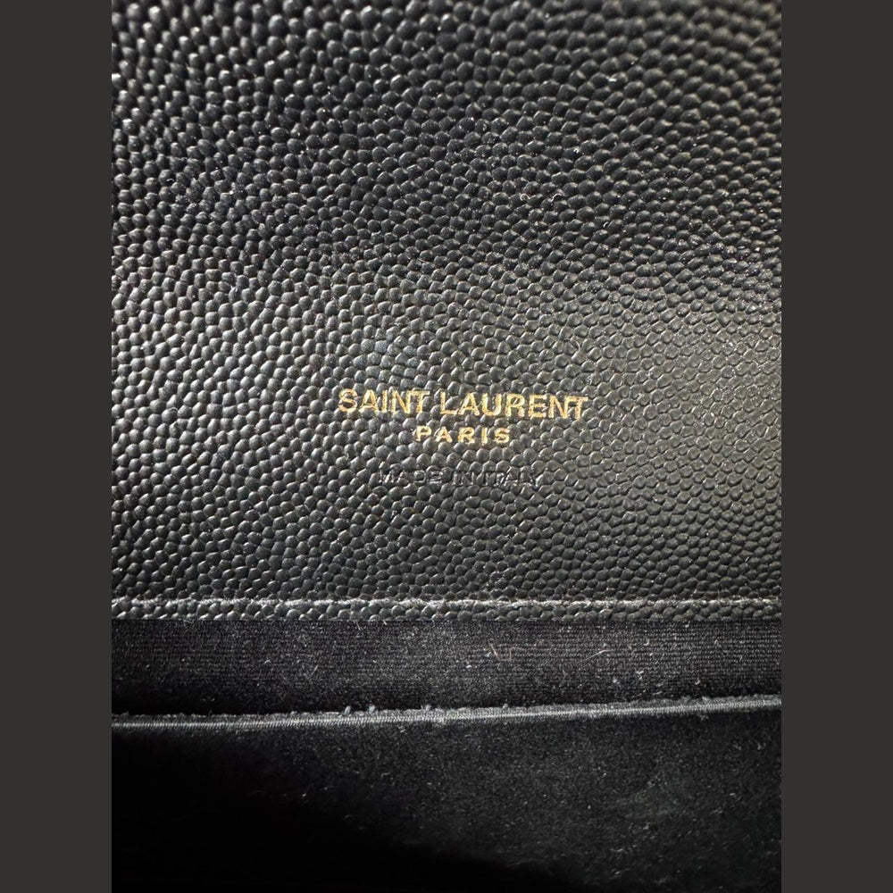 A timeless expression of Saint Laurent’s signature elegance, this Envelope clutch embodies refined sophistication with its iconic matelassé chevron quilting and sleek structured silhouette. Crafted in luxurious textured leather and finished with the classic YSL monogram in gold-tone hardware, it is a versatile piece that transitions effortlessly from day to evening. Designed to be carried as a clutch or worn with its detachable strap, it offers both practicality and understated luxury.