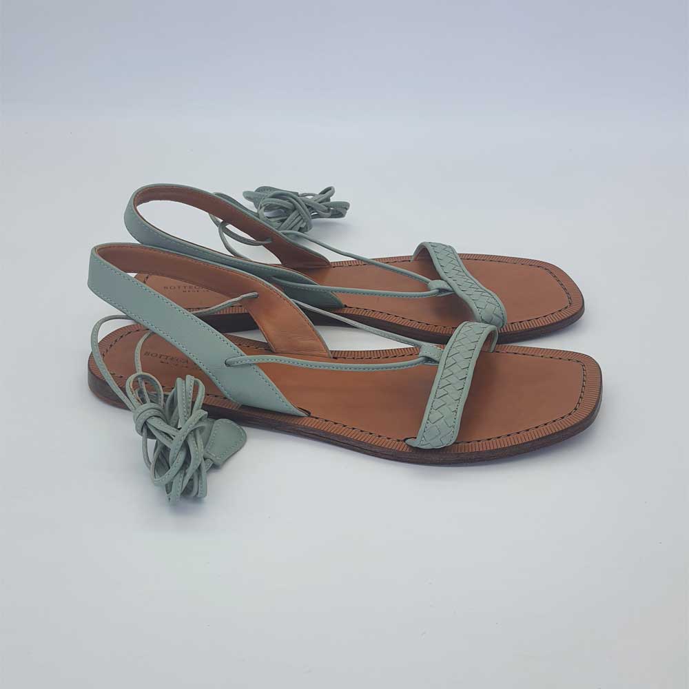 Turquoise Wrap Around Intreciattio Leather Flat Sandals. Comes in Excellent condition with no inclusion.