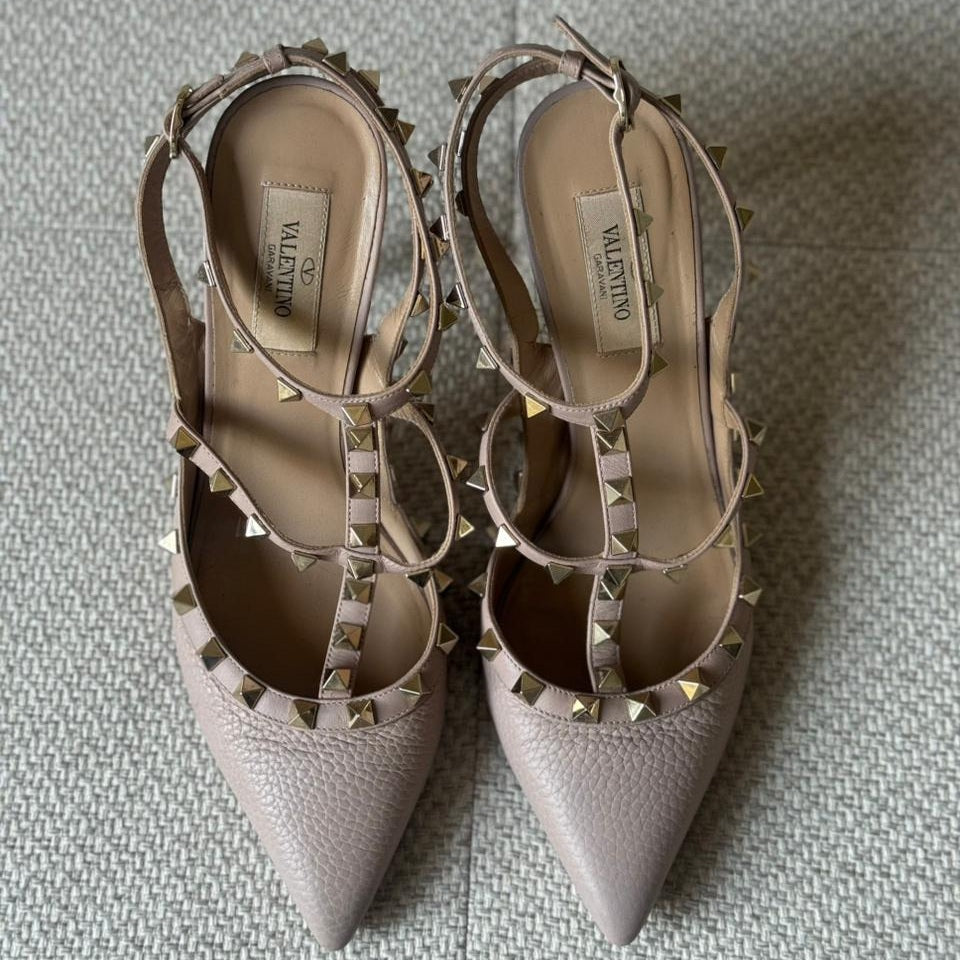 A timeless icon of modern elegance, the Valentino Garavani Rockstud pumps embody refined femininity with an edge. Crafted in soft leather in the signature Pink Powder shade, this classic silhouette is elevated by the house’s iconic Rockstud embellishments, delivering a perfect balance between sophistication and statement design. A versatile essential that transitions effortlessly from day to evening wear.