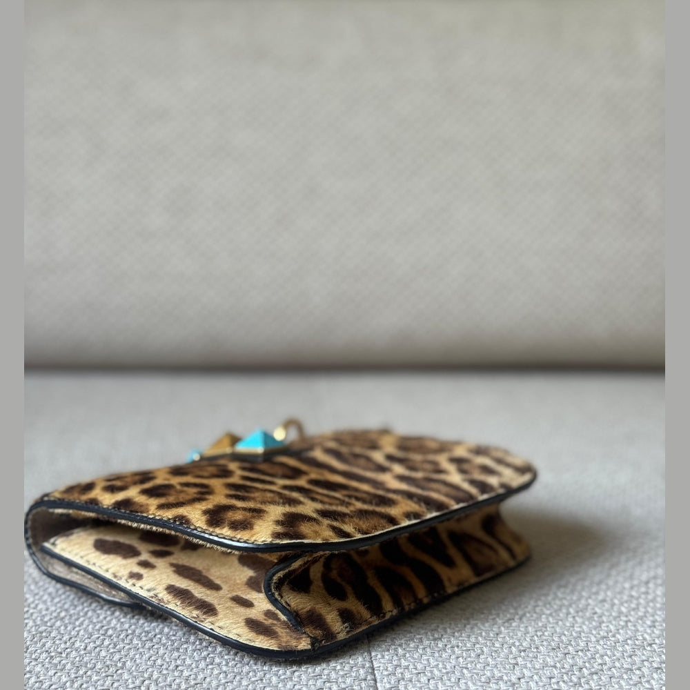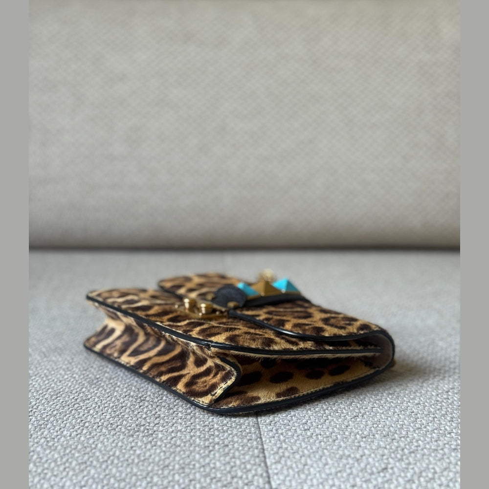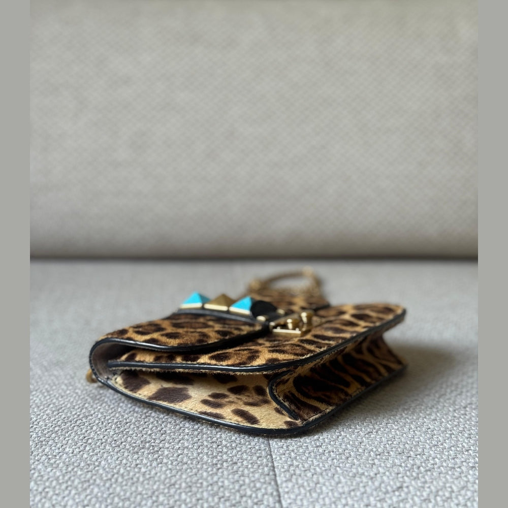 Bold, iconic, and unmistakably Valentino, the Leopard Calf Hair Rockstud Glam Lock is a statement piece that transcends seasons. The house’s signature Rockstud hardware meets luxurious calf hair in a striking leopard print, delivering a perfect balance between edge and elegance. Compact yet impactful, this bag elevates even the simplest look into a confident fashion statement.