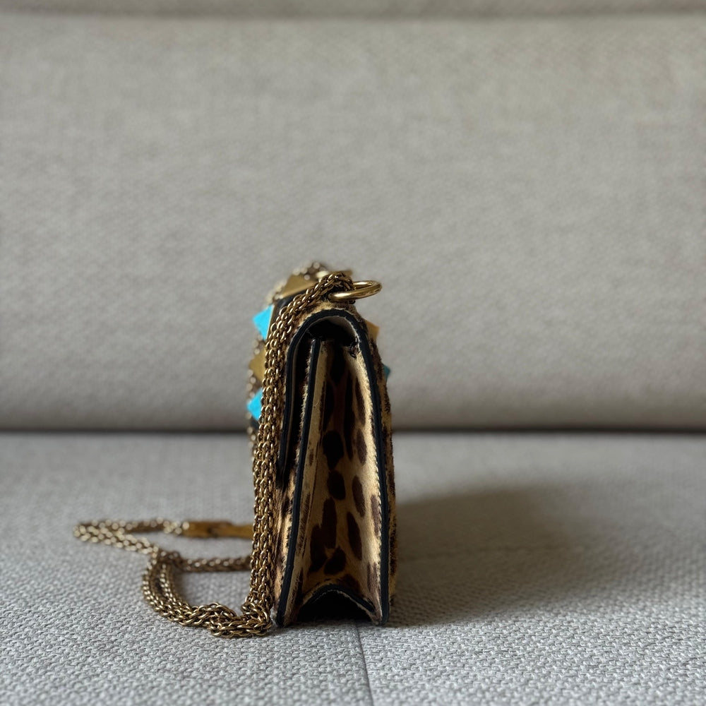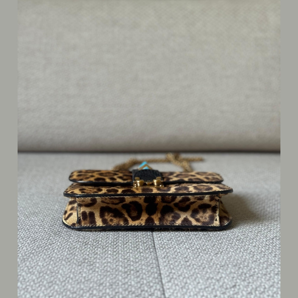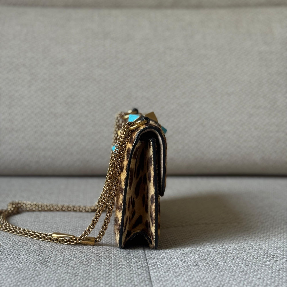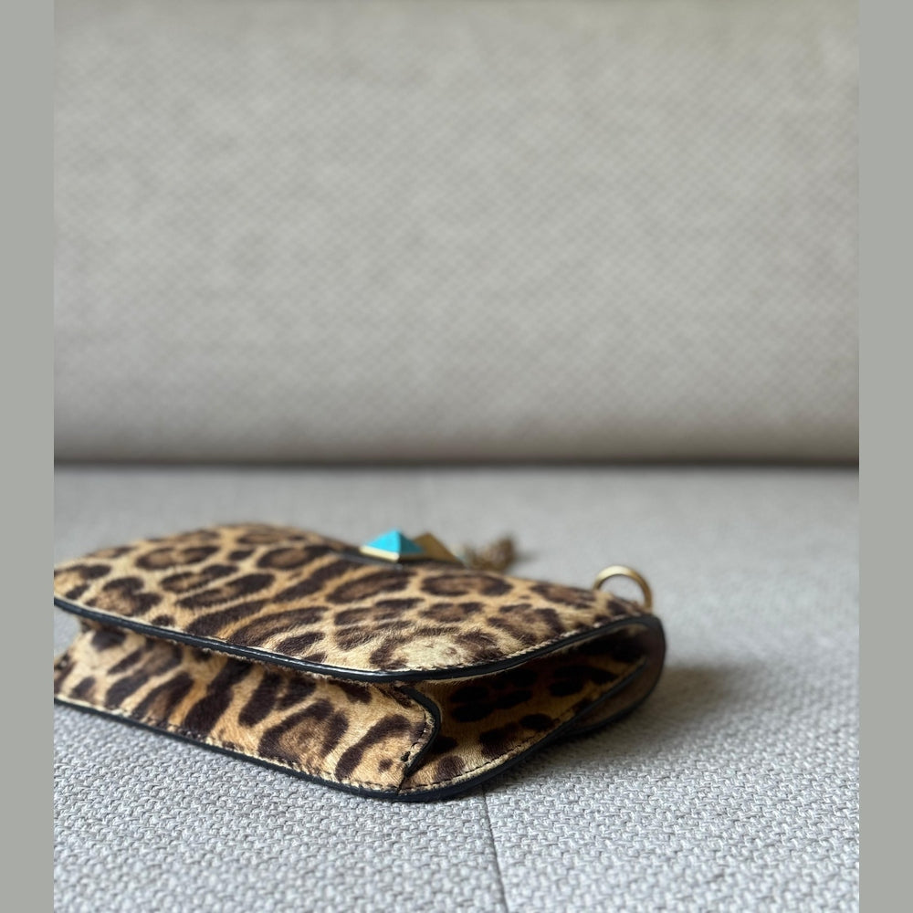 Bold, iconic, and unmistakably Valentino, the Leopard Calf Hair Rockstud Glam Lock is a statement piece that transcends seasons. The house’s signature Rockstud hardware meets luxurious calf hair in a striking leopard print, delivering a perfect balance between edge and elegance. Compact yet impactful, this bag elevates even the simplest look into a confident fashion statement.